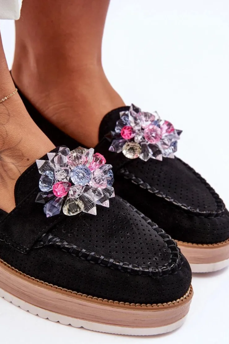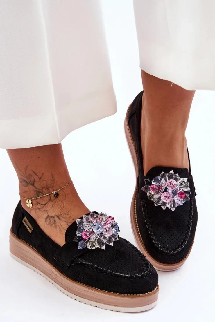 Boto Mokasyny Na Platformie|Mokasyny Damskie Zamszowe*Damskie Mokasyny Na Platformie Z Kamieniami Czarne Elonore