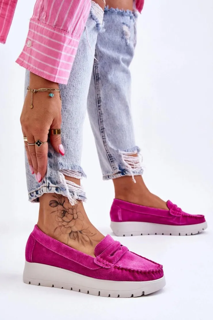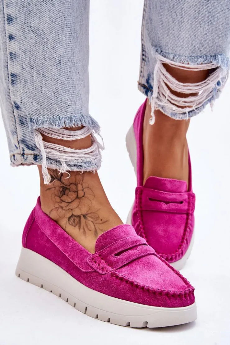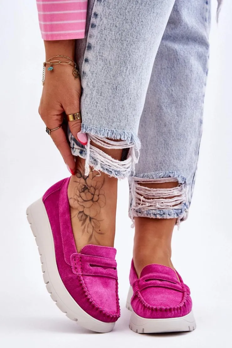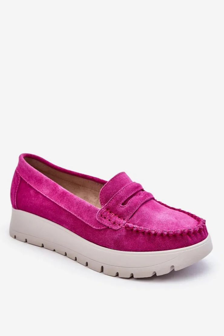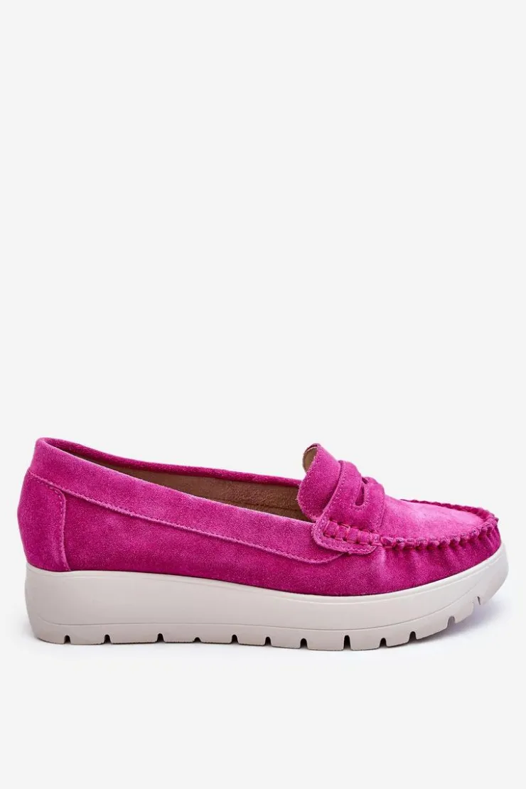 Mokasyny damskie wykonane z naturalnej skóry z ozdobnym paseczkiem z przodu. Zapiętek został usztywniony, co pozwoli na odpowiednią stabilizację stopy. Buty osadzono na platformie. Ten model posiada miękką wkładkę z perforacją. Mokasyny to idealne buty do wielu stylizacji! Koniecznie powinnaś je mieć! Przy wyborze rozmiaru prosimy sugerować się tabelą rozmiarów.