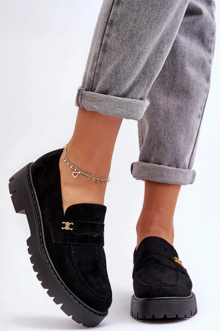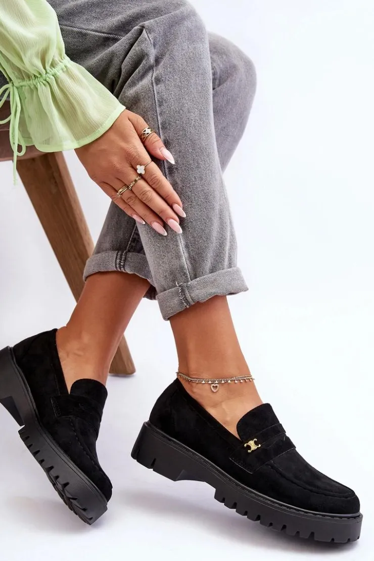 Damskie mokasyny to idealne obuwie na wiele okazji! Osadzono je na platformie i płaskim obcasie. Buty te posiadają delikatnie usztywniany zapiętek oraz wkładkę z eko skóry. Pasku z przodu posiada wycięcie oraz delikatną ozdobę. Ten model z pewnością przypadnie Ci do gustu! Przy wyborze rozmiaru prosimy sugerować się tabelą rozmiarów.