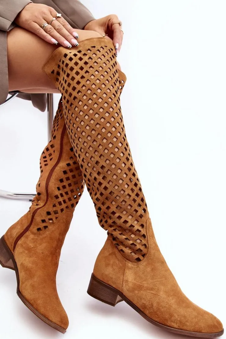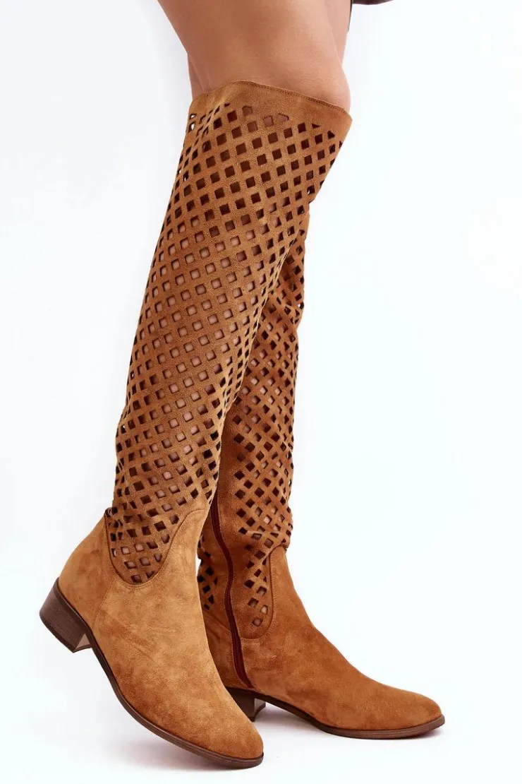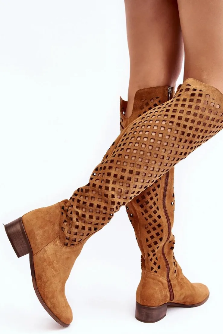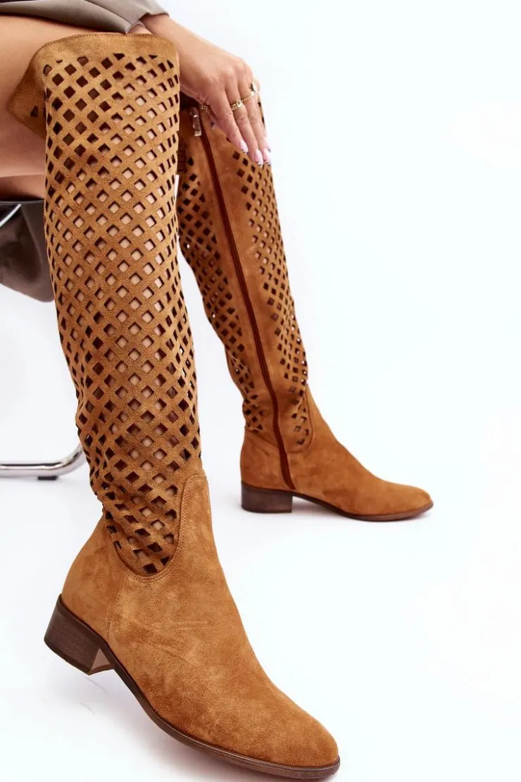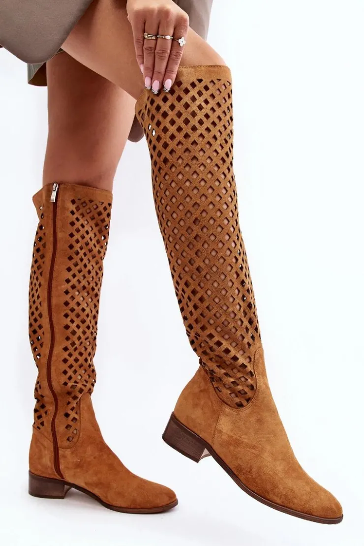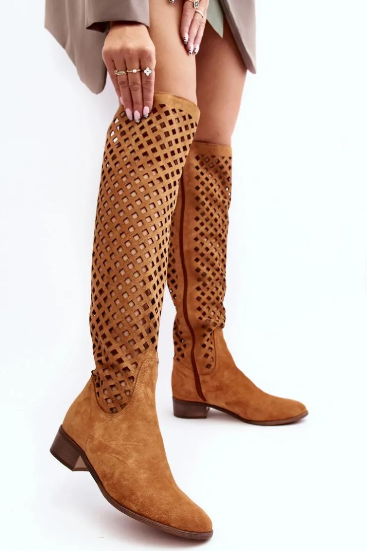 Piękne kozaki damskie od polskiego producenta. Każdy model wykonany jest z naturalnych skór wysokiej jakości. Ażurowe kozaki wykonane są z miękkiego, naturalnego zamszu. Model z zaokrąglonym noskiem. Cholewka na całości zapinana na suwak. Ozdobne wycięcie na górze. Płaski obcas oraz skórzana, miękka wkładka to gwarancja stabilności oraz komfortu podczas użytkowania. Idealny model na sezon wiosenno-letni! Przy wyborze rozmiaru prosimy sugerować się tabelą rozmiarów.