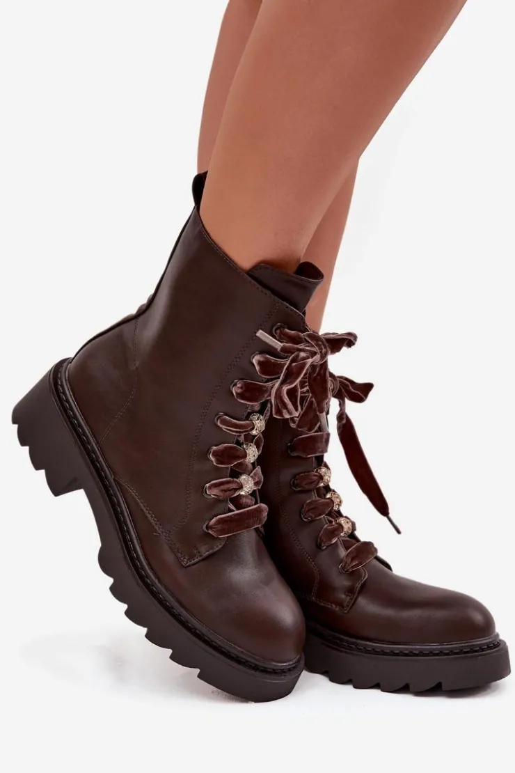 Botki damskie wykonane z eko skóry to propozycja, która łączy elegancję z nowoczesnym stylem. Wnętrze ocieplane miękkim kocem obuwniczym zapewnia ciepło i wygodę w chłodniejsze dni. Model wyróżnia się efektownym sznurowaniem z aksamitnego materiału, które wyjątkowego uroku. Całość dopełniają ozdobne przypinki, dodające modnego akcentu. To stylowe botki idealne do jesienno-zimowych stylizacji.Przy wyborze rozmiaru prosimy sugerować się tabelą rozmiarów.