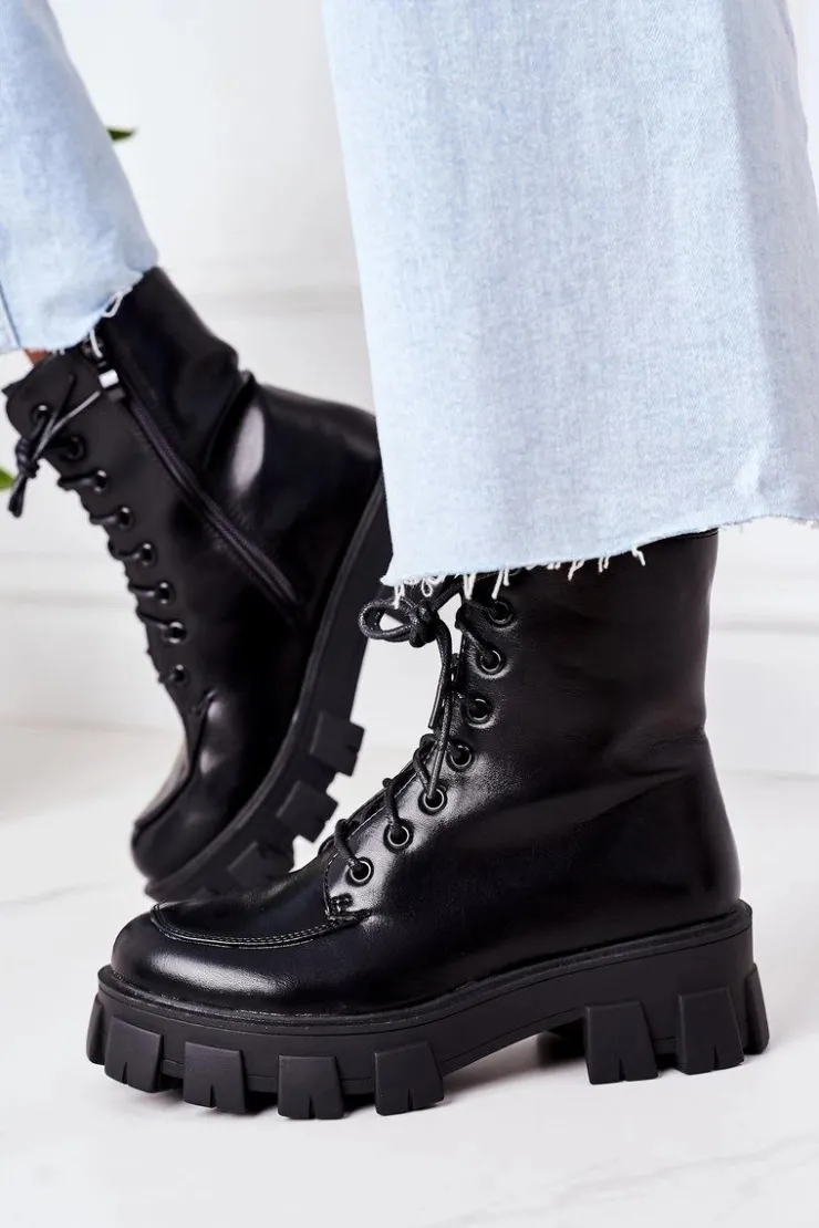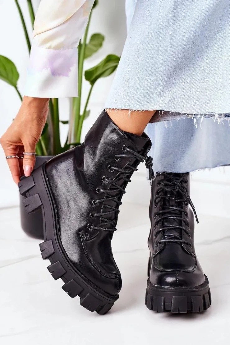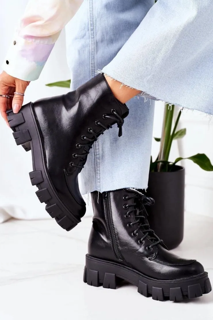 Wyjątkowe botki damskie wykonane ze skóry ekologicznej. Workery są ocieplone miłym w dotyku kocem obuwniczym. Przy wyborze rozmiaru prosimy sugerować się tabelą rozmiarów.