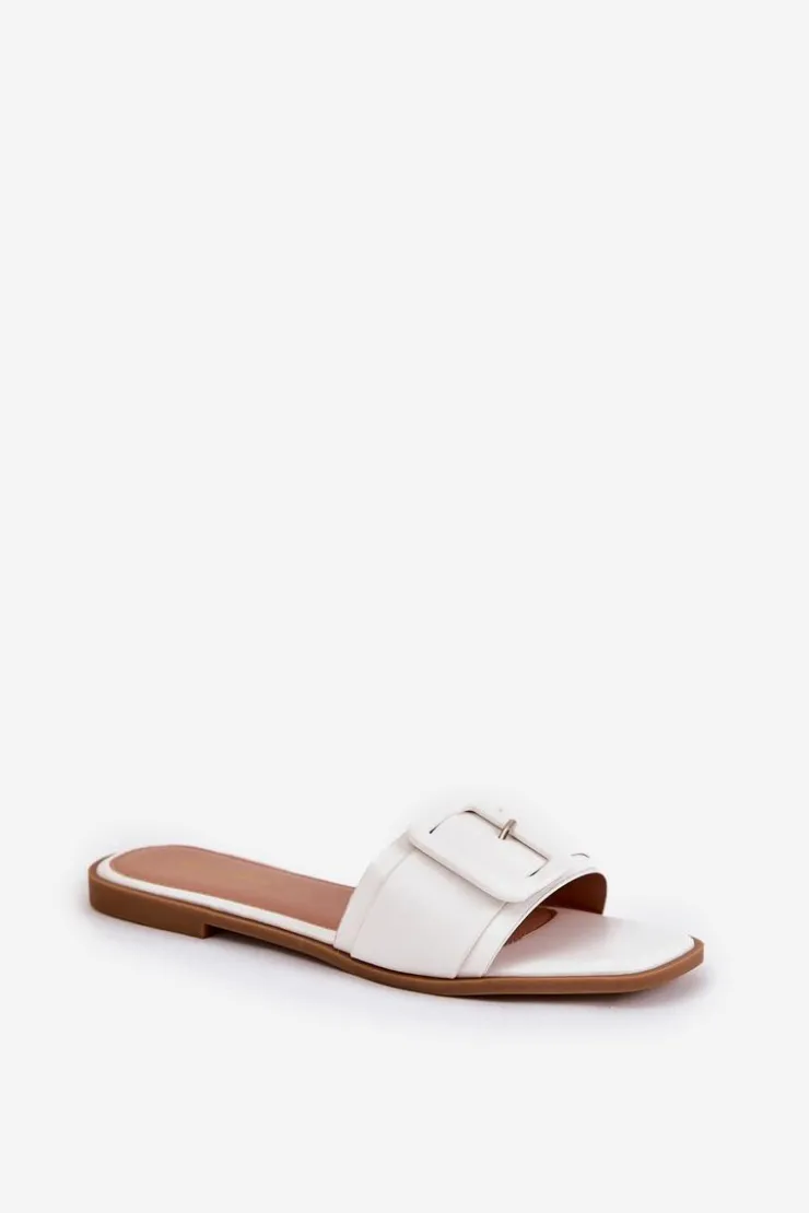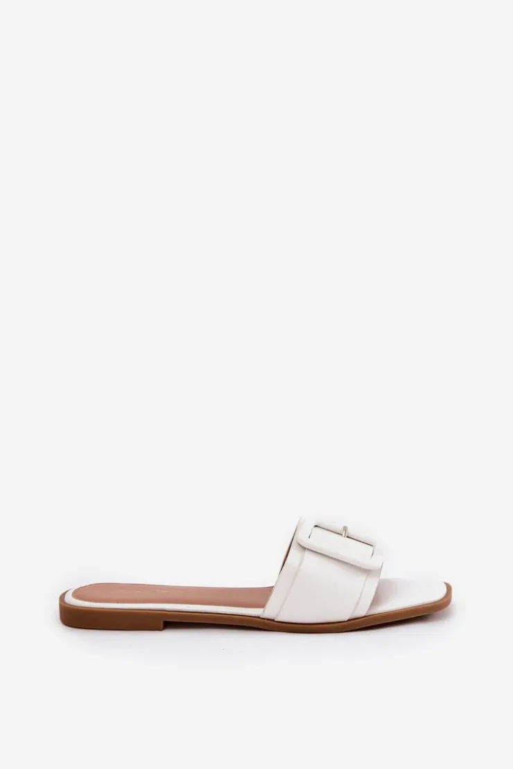 Klasyczne klapki damskie z eko skóry, osadzone na płaskim obcasie, które łączą wygodę z eleganckim wyglądem. Duża klamra na pasku dodaje im subtelnego charakteru. Idealne na co dzień, te klapki doskonale komponują się z letnimi stylizacjami, zapewniając komfort i prostą elegancję przez cały dzień. Przy wyborze rozmiaru prosimy sugerować się tabelą rozmiarów.