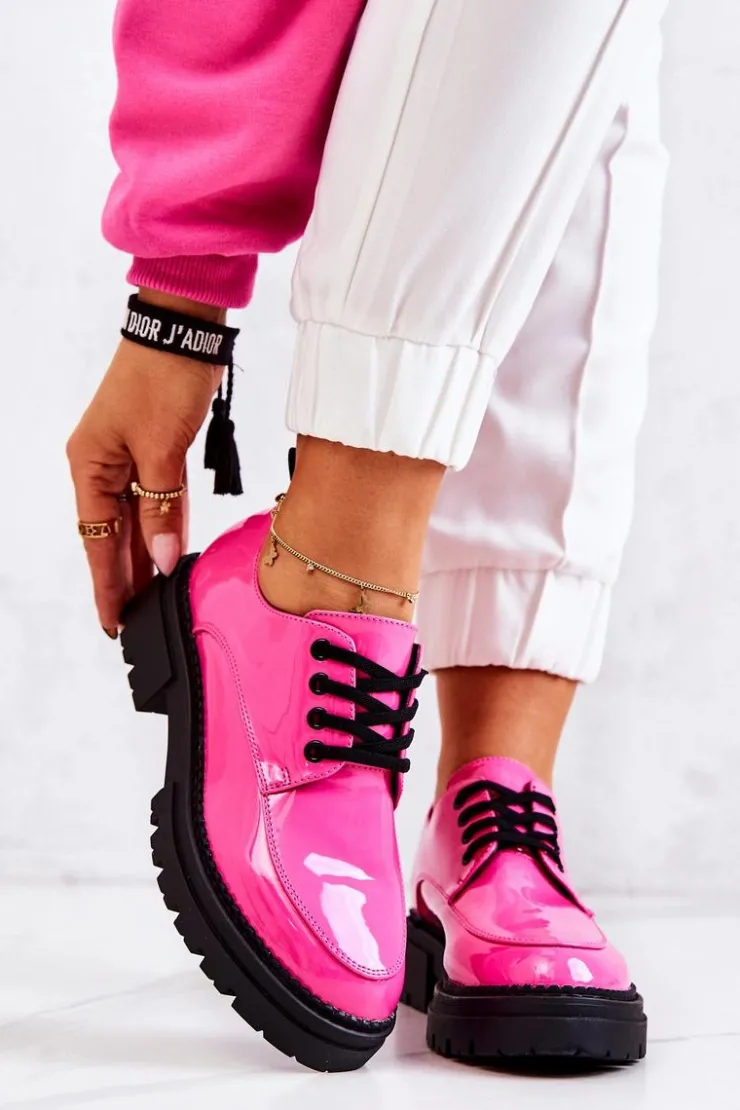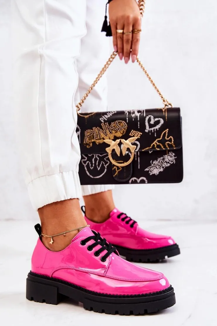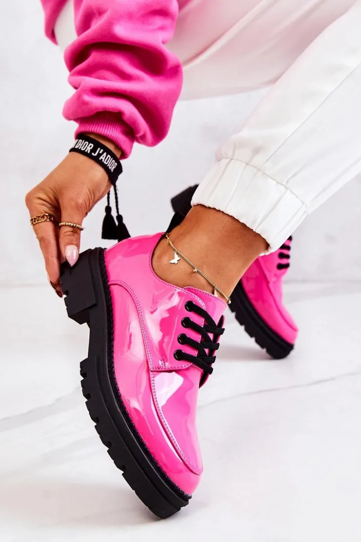Półbuty zostały wykonane z wysokiej jakości lakierowanej eko skóry. Miękka wkładka ze skóry naturalnej to gwarancja komfortu. Elastyczne wiązanie sprawia, że można dopasować je odpowiednio do tęgości nogi. Niewysoki, masywny obcas zapewni wygodę. Koniecznie powinnaś mieć ten model w swojej szafie! Podczas wyboru rozmiaru prosimy sugerować się tabelą rozmiarów.