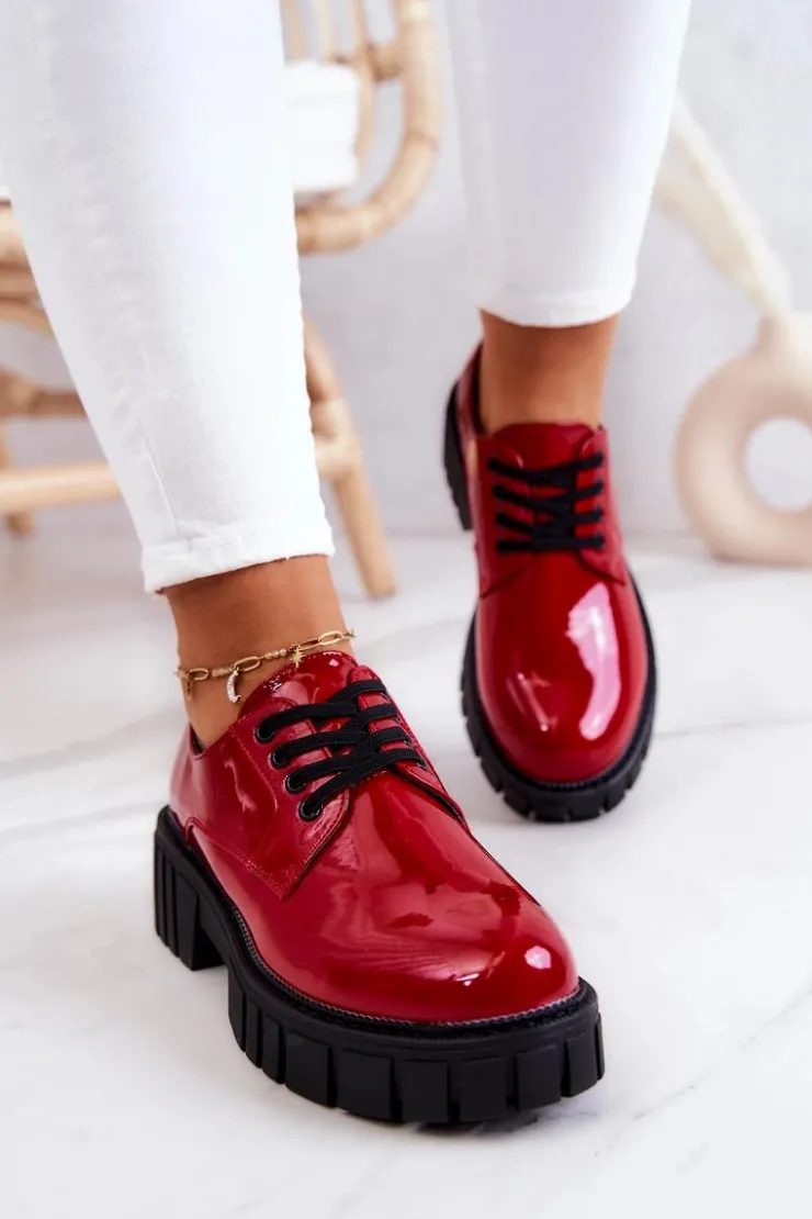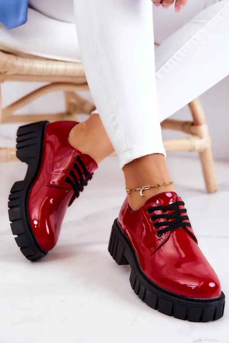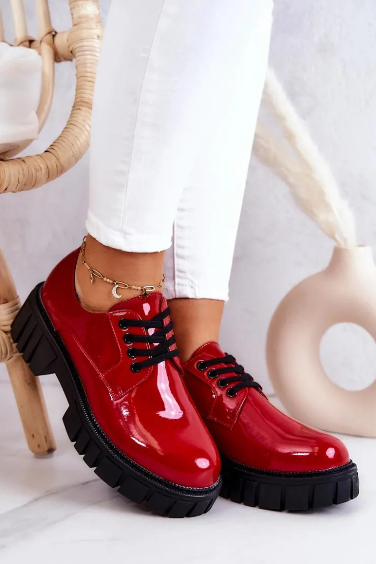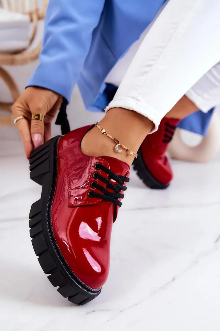 Półbuty zostały wykonane z wysokiej jakości lakierowanej eko skóry. Miękka wkładka ze skóry naturalnej to gwarancja komfortu. Elastyczne wiązanie sprawia, że można dopasować je odpowiednio do tęgości nogi. Niewysoki, masywny obcas zapewni wygodę. Koniecznie powinnaś mieć ten model w swojej szafie! Podczas wyboru rozmiaru prosimy sugerować się tabelą rozmiarów.