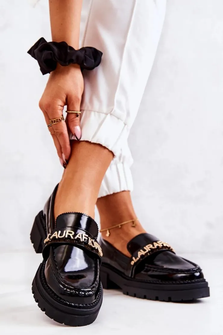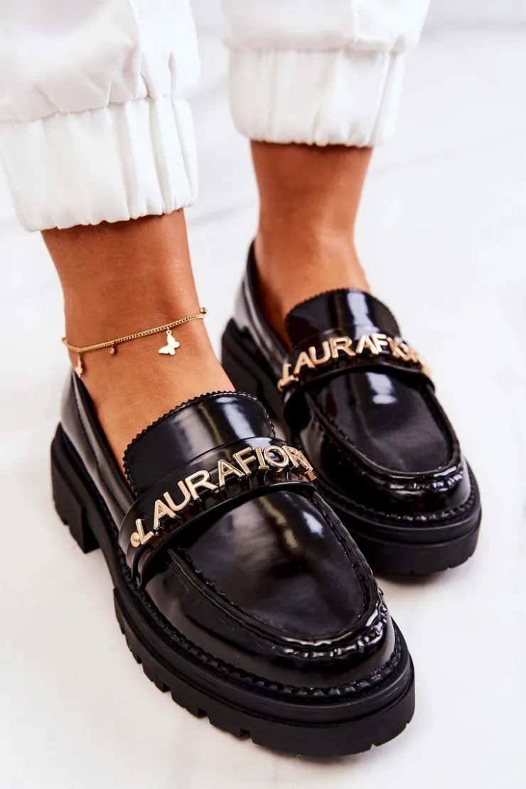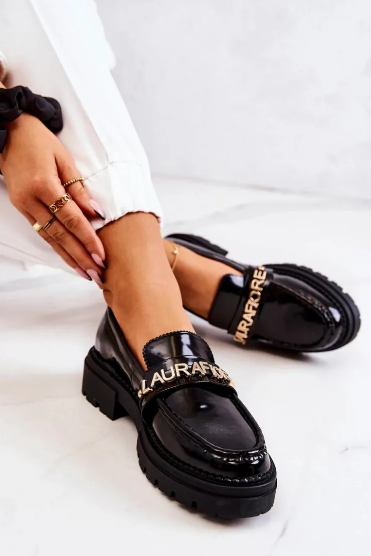Klasyczne półbuty w stylu przepięknych loaferów marki Laura Fiore! Buty zostały wykonane z wysokiej jakości lakierowanej eko skóry. Charakterystyczny paseczek z przesuwanymi literkami Laura Fiore wygląda naprawdę cudnie. Półbuty posiadają wysoką podeszwę oraz obcas, który uniesie naszą sylwetkę. Miękka, skórzana wkładka zadba o wygodę podczas noszenia. Przy wyborze rozmiaru prosimy sugerować się tabelą rozmiarów.