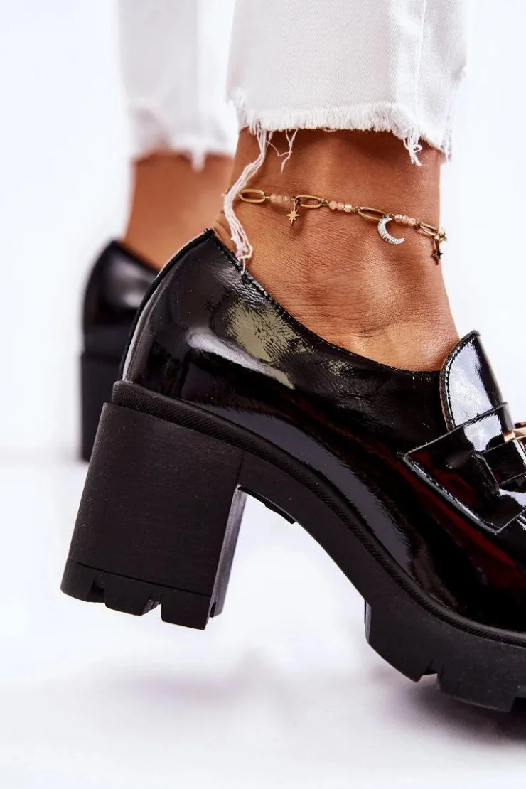 Piękne półbuty na obcasie w postaci słupka z delikatną platformą. Cholewka wykonana ze skóry naturalnej. Model niezwykle komfortowy w użytkowaniu. Wkładka wykonana została ze skóry naturalnej. Podeszwa posiada żłobienia i jest wykonana z gumowego tworzywa. Lustrzana ozdoba na przodzie. Buty posiadają usztywniany zapiętek, który dodatkowo stabilizuje stopę. Pod językiem znajduje się gumka ściągająca, która sprawi, że but będzie idealnie dopasowany do stopy. Przy wyborze rozmiaru prosimy sugerować się tabelą rozmiarów.