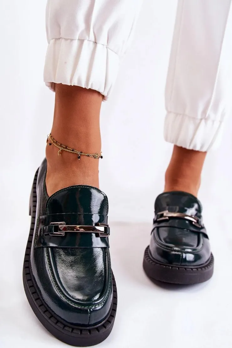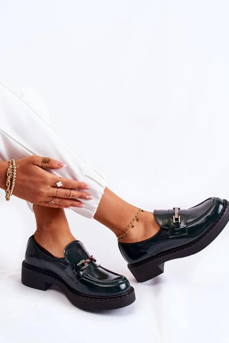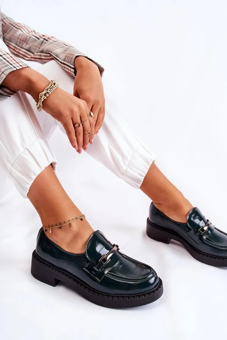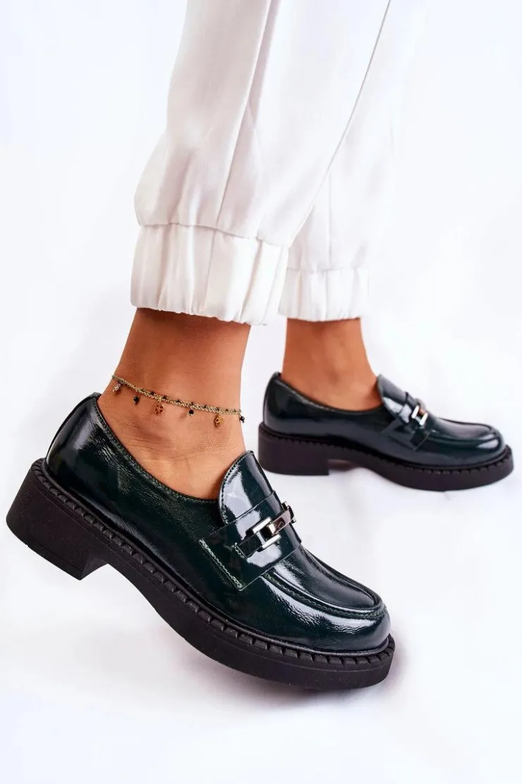 Boto Półbuty Lakierowane|Półbuty Skórzane*Lakierowane Półbuty Ze Srebrną Ozdobą Zielone Lemar Hestill Zielony