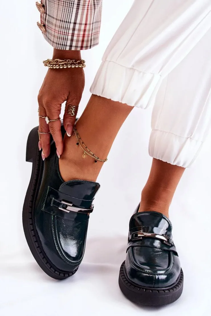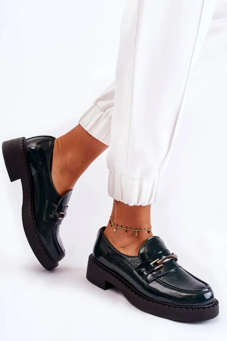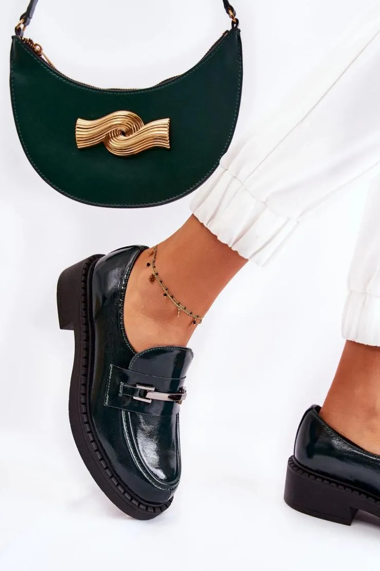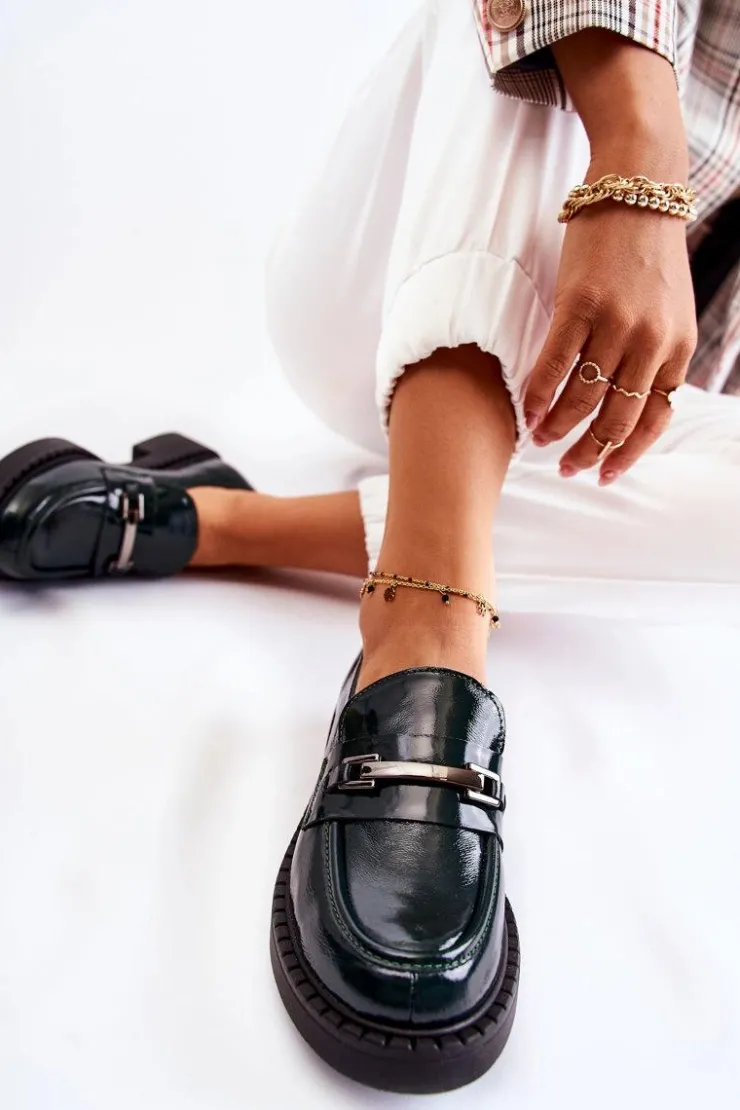 Boto Półbuty Lakierowane|Półbuty Skórzane*Lakierowane Półbuty Ze Srebrną Ozdobą Zielone Lemar Hestill Zielony