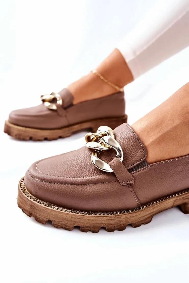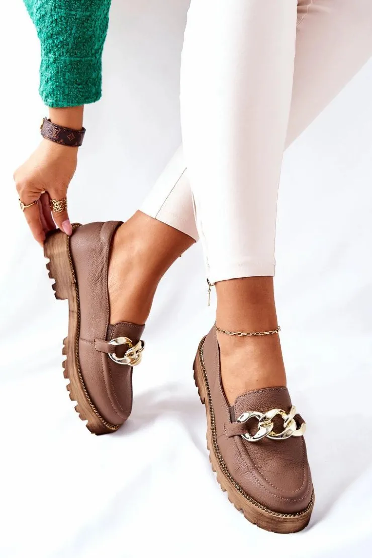 Klasyczne półbuty w stylu przepięknych loaferów! Buty zostały wykonane z wysokiej jakości skóry naturalnej. Charakterystyczne zdobienie w postaci łańcucha sprawi, że stworzymy z nimi wiele wspaniałych stylizacji. Wysoka podeszwa oraz obcas, który uniesie naszą sylwetkę. Przy wyborze rozmiaru prosimy sugerować się tabelą rozmiarów.