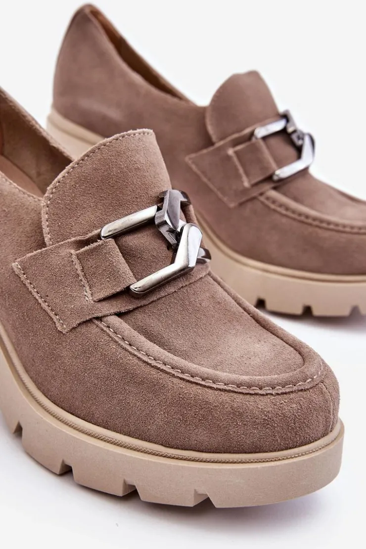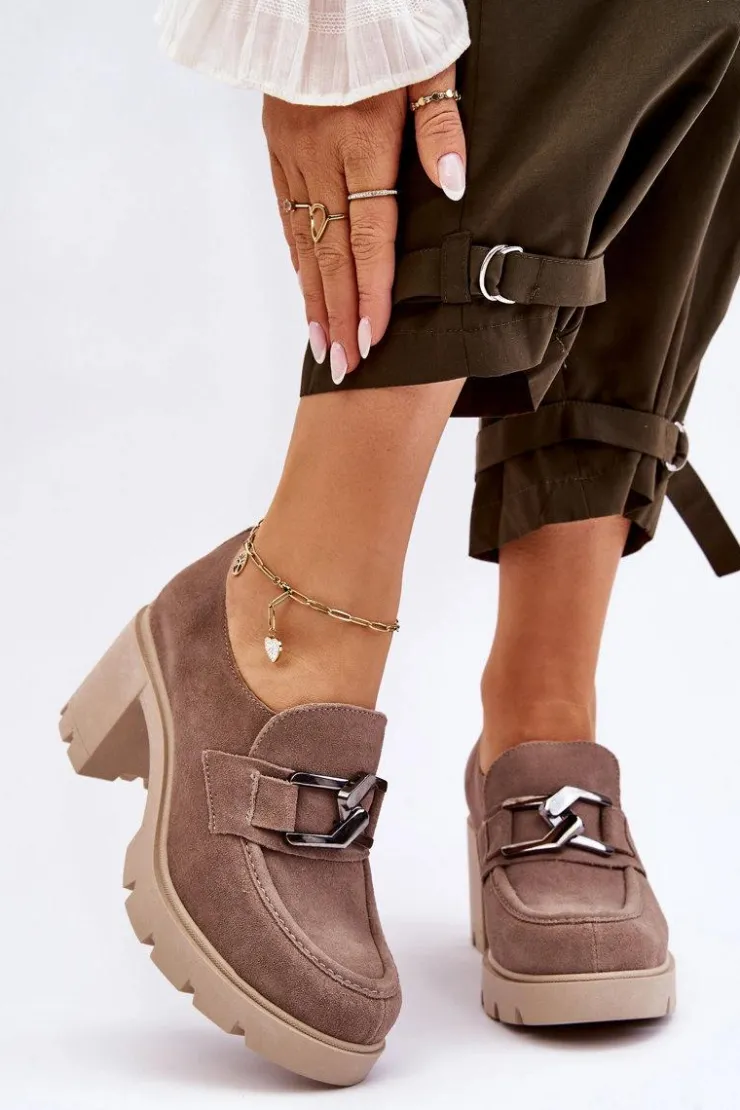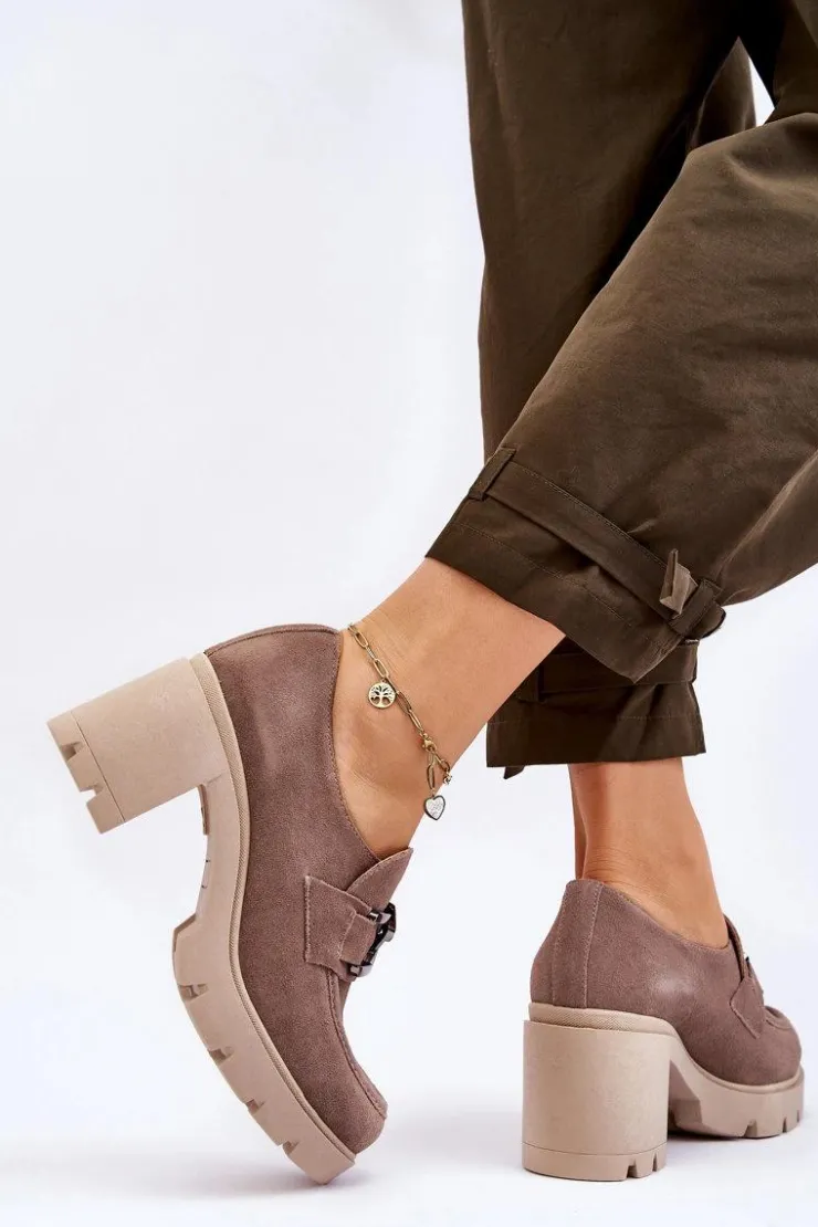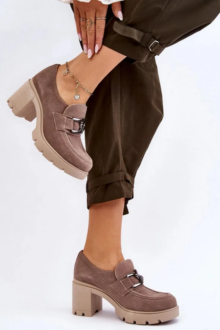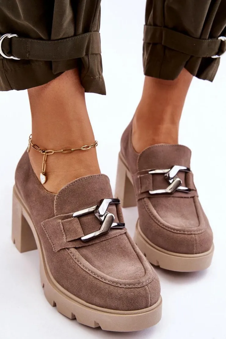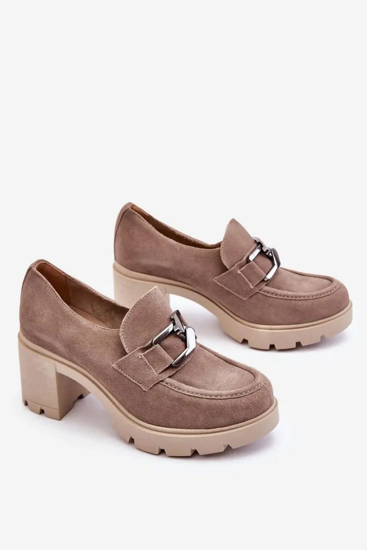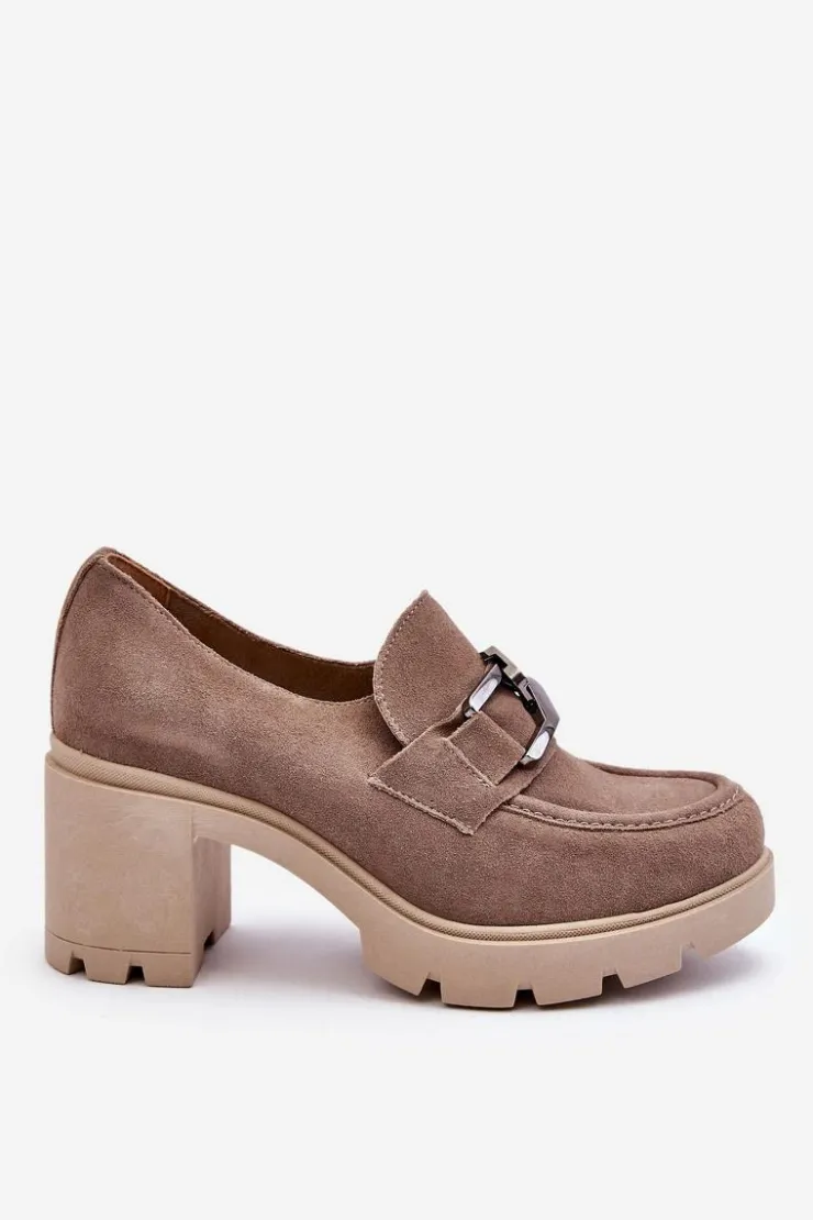 Boto Półbuty Skórzane*Eleganckie Półbuty Na Słupku Z Ciemnosrebrną Ozdobą Beżowe Lemar Harmell