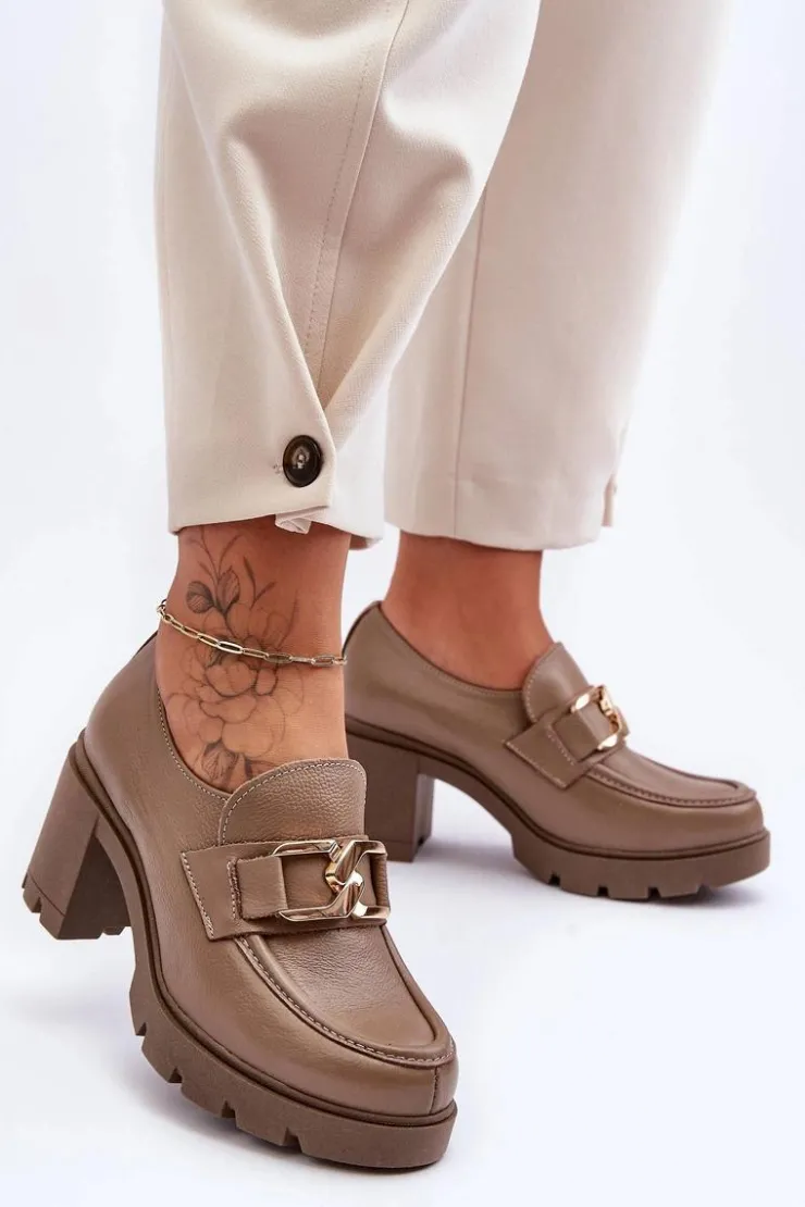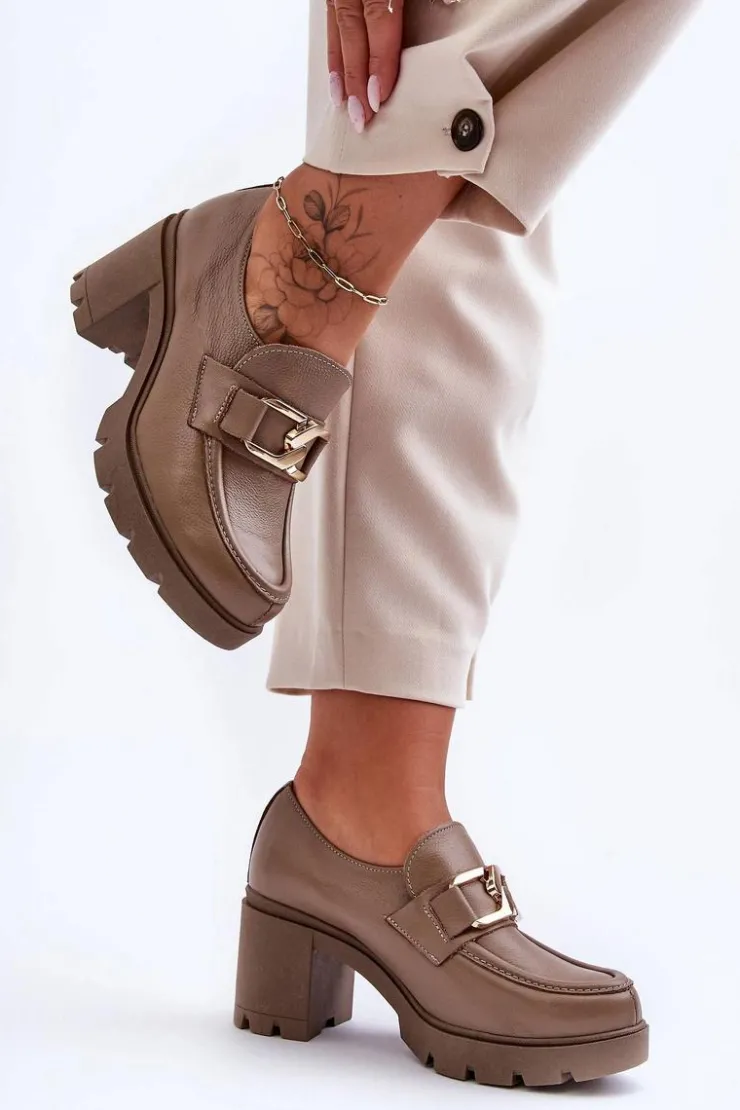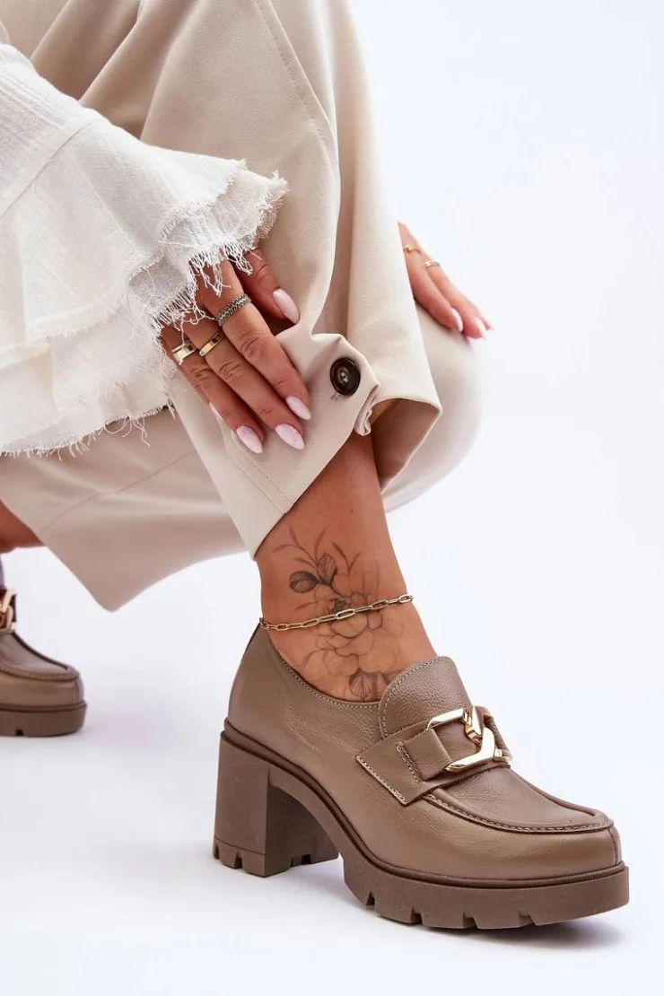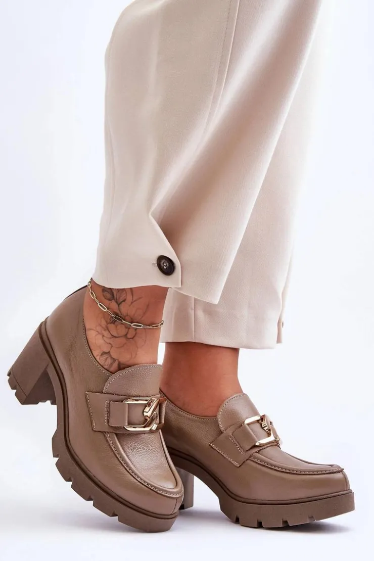 Cudowne półbuty na obcasie z cholewką wykonaną ze skóry naturalnej. Wnętrze zostało pokryte skórą naturalną oraz materiałem tekstylnym, dzięki temu są bardzo komfortowe w użytkowaniu. Wkładka ze skóry naturalnej, a podeszwa wykonana z gumowego tworzywa. Stylowy obcas w postaci szerokiego słupka zapewni stabilizację na każdym kroku. Lustrzana ozdoba na przodzie. Zapiętek jest usztywniany. Dodatkowo pod językiem znajduje się gumka ściągająca, która sprawi, że but będzie idealnie dopasowany do stopy. Przy wyborze rozmiaru prosimy sugerować się tabelą rozmiarów.