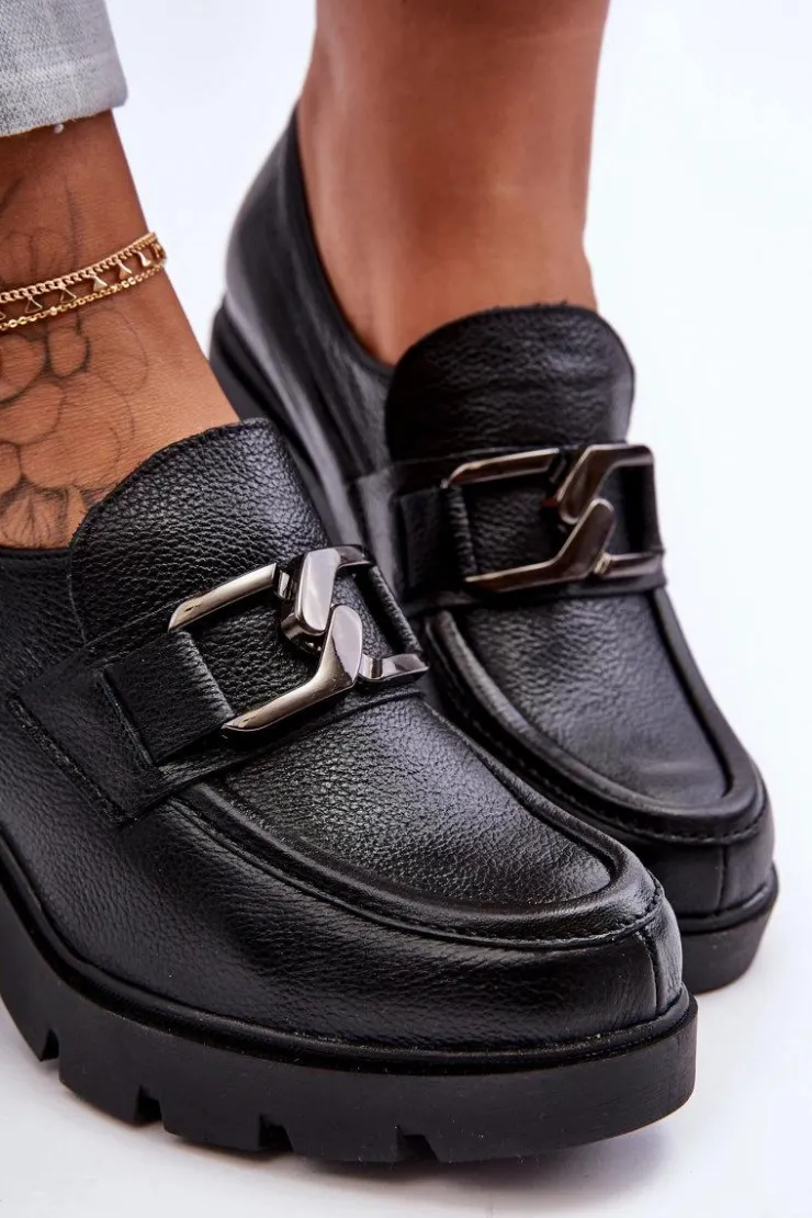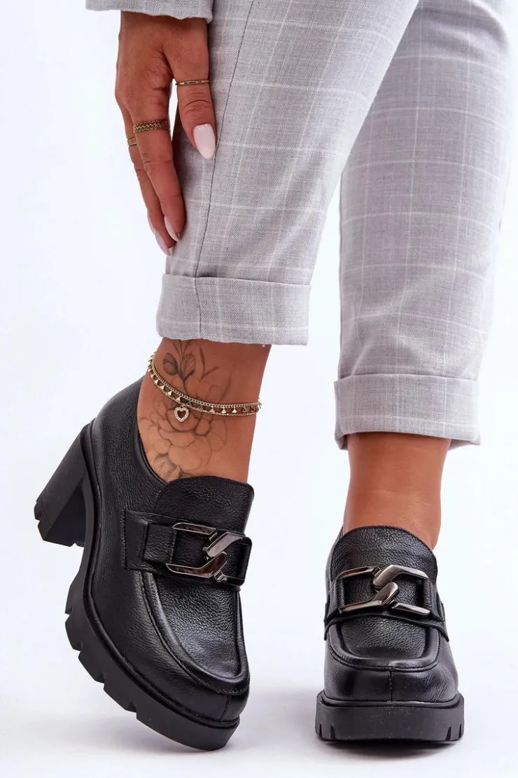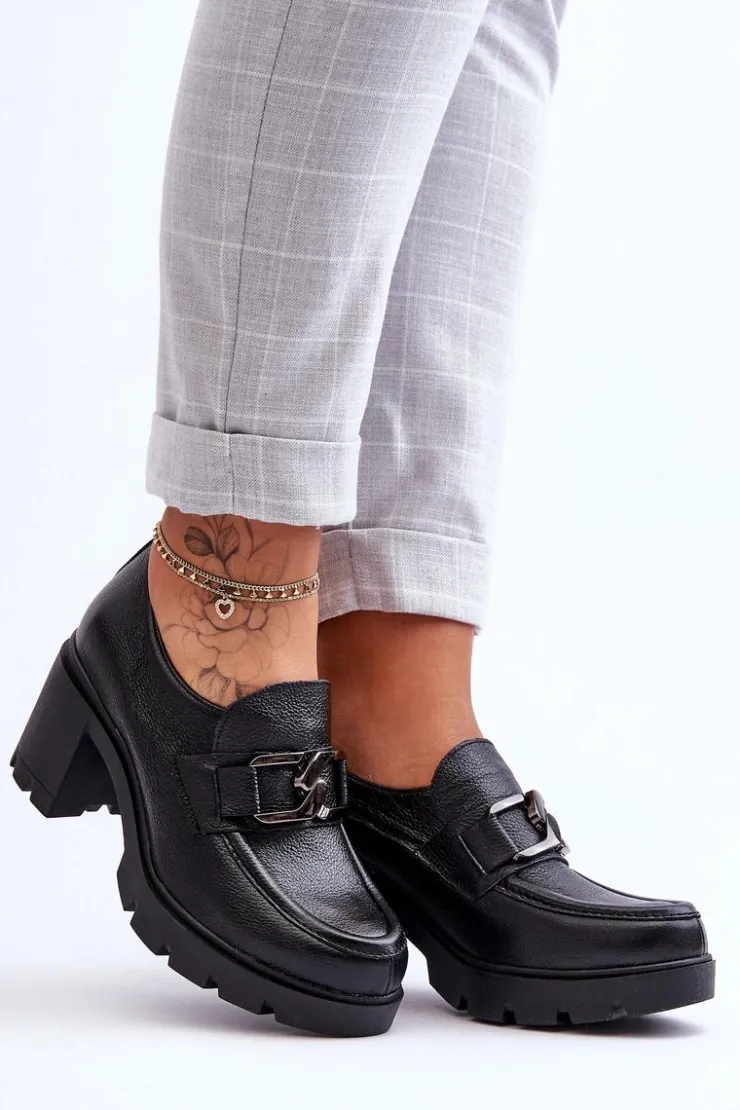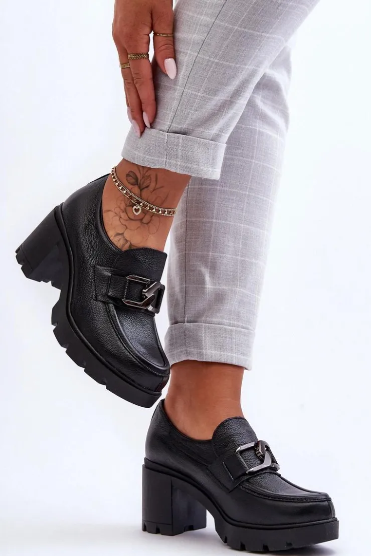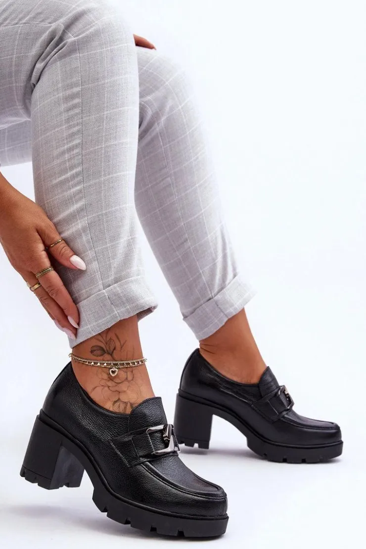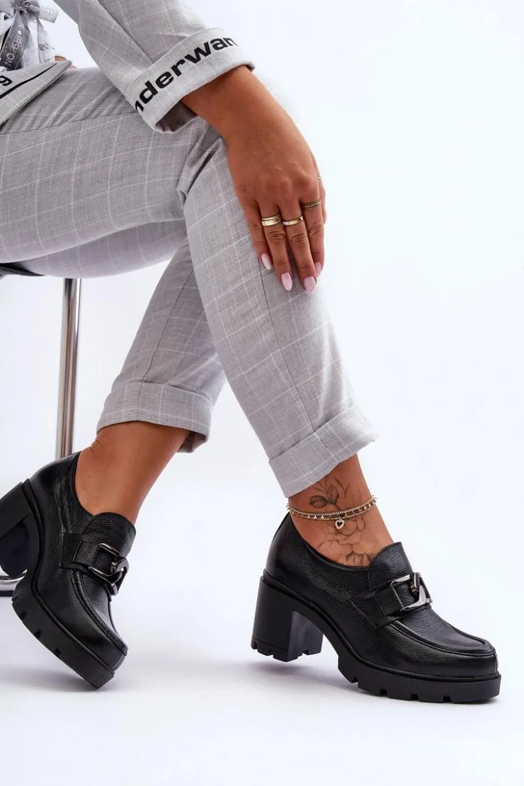 Boto Półbuty Skórzane*Eleganckie Półbuty Na Słupku Z Ozdobą Czarne Lemar Harmell