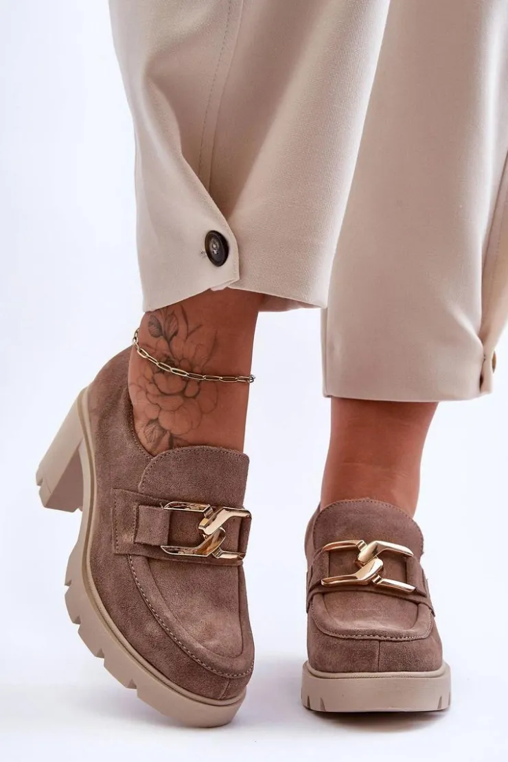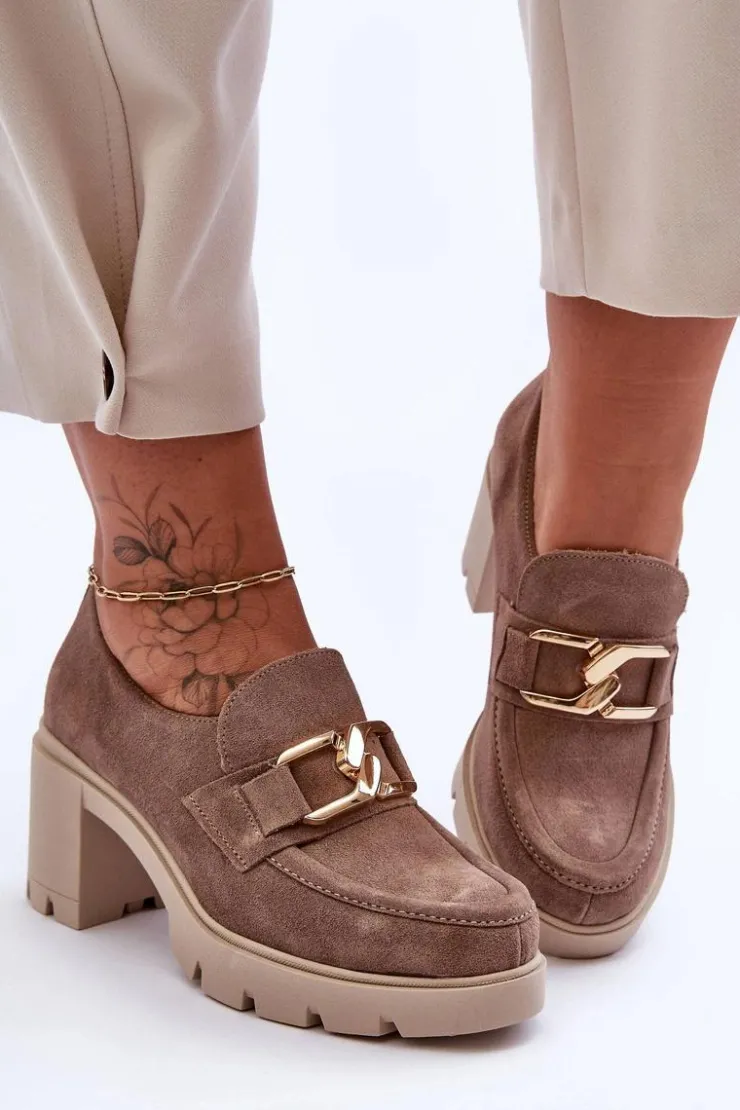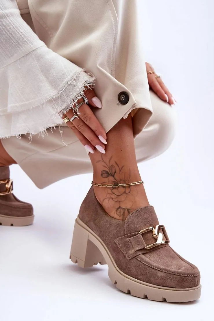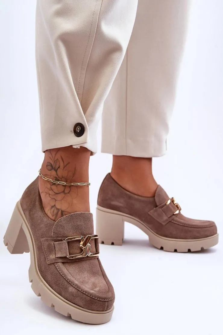Cudowne półbuty na obcasie z cholewką wykonaną ze skóry naturalnej zamszowej. Wnętrze zostało pokryte skórą naturalną oraz materiałem tekstylnym, dzięki temu są bardzo komfortowe w użytkowaniu. Wkładka ze skóry naturalnej, a podeszwa wykonana z gumowego tworzywa. Stylowy obcas w postaci szerokiego słupka zapewni stabilizację na każdym kroku. Lustrzana ozdoba na przodzie. Zapiętek jest usztywniany. Dodatkowo pod językiem znajduje się gumka ściągająca, która sprawi, że but będzie idealnie dopasowany do stopy. Przy wyborze rozmiaru prosimy sugerować się tabelą rozmiarów.