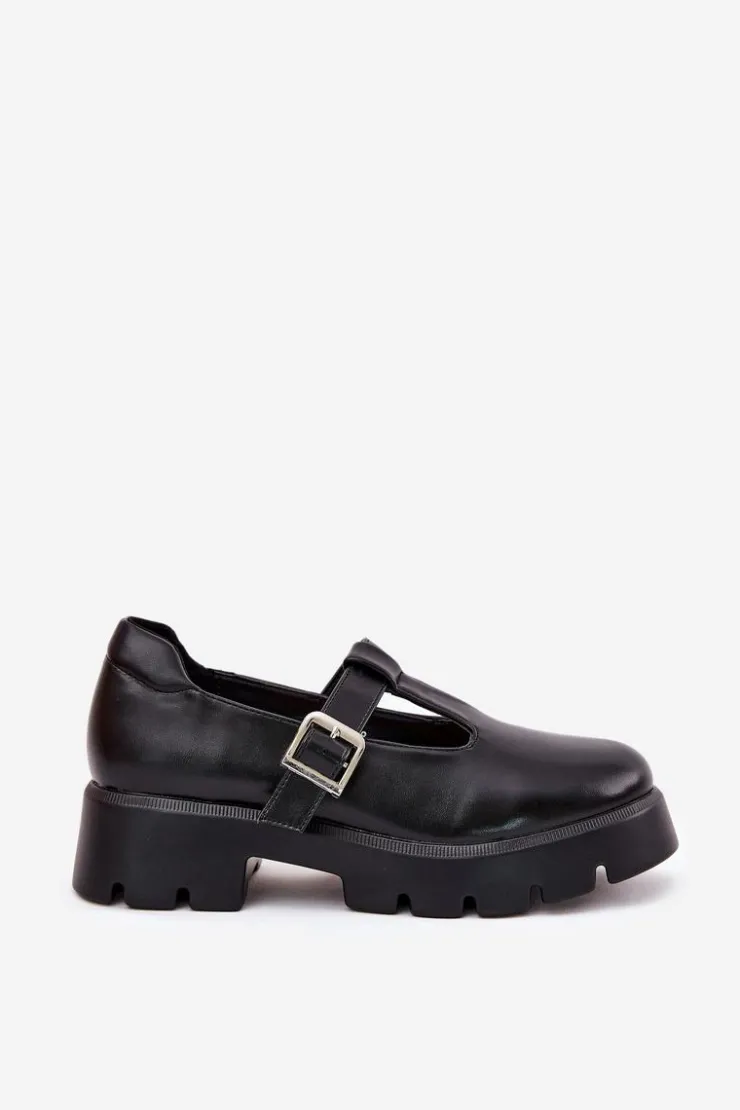 Stylowe półbuty damskie wykonane z eko skóry to doskonałe połączenie klasyki i nowoczesnego wyglądu. Osadzone na płaskim obcasie i platformie, zapewniają komfort oraz stabilność na każdym kroku. Paseczek z klamrą na śródstopiu zwiększa dopasowanie i podtrzymuje stopę. Idealne na co dzień, do casualowych i bardziej eleganckich stylizacji! Przy wyborze rozmiaru prosimy sugerować się tabelą rozmiarów.