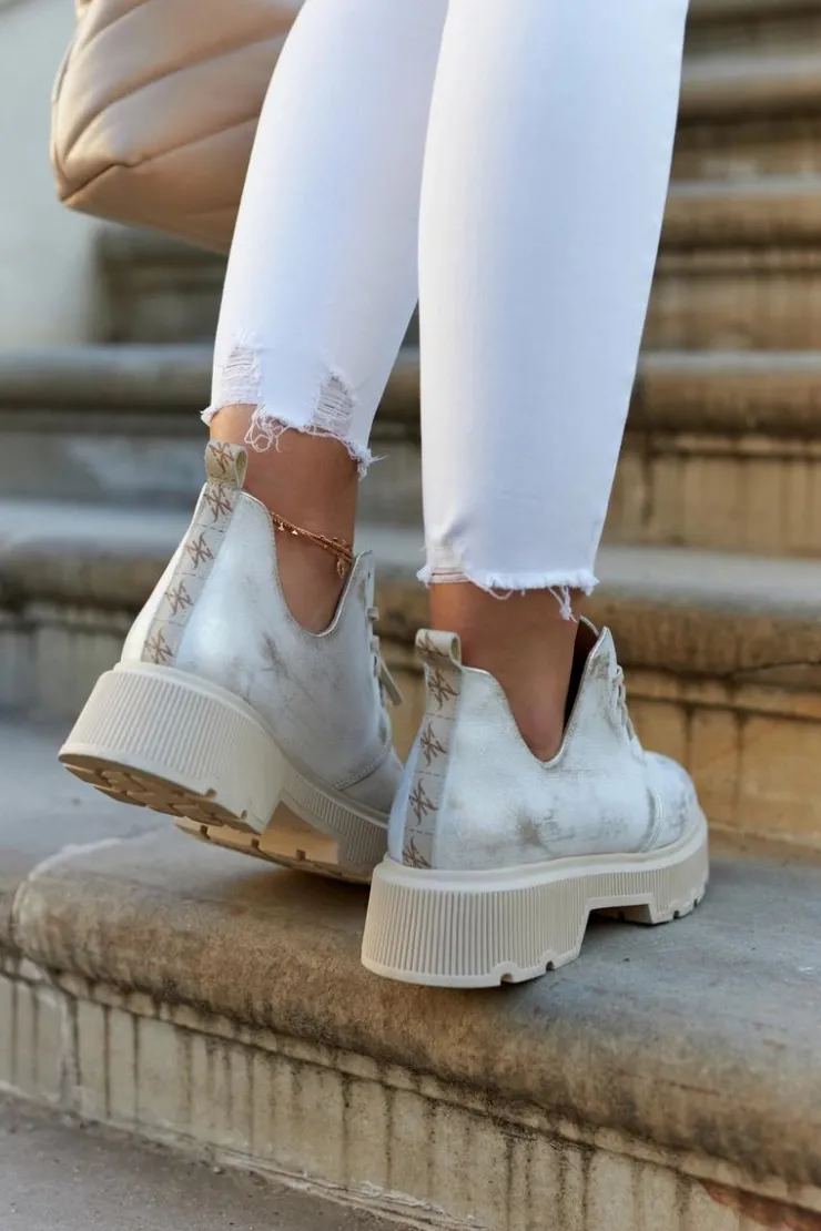 Piękne półbuty marki Nicole. Wykonane są ze skóry naturalnej. Klasyczna forma pasuje do wielu stylizacji. Buty dobrze dopasowują się do kształtu stopy, posiadają miękką wkładkę ze skóry naturalnej. Klasyczny, wiązany model. Posiadają usztywniany zapiętek. Masywna podeszwa świetnie będzie izolować od zimna. Przy wyborze rozmiaru prosimy sugerować się tabelą rozmiarów.