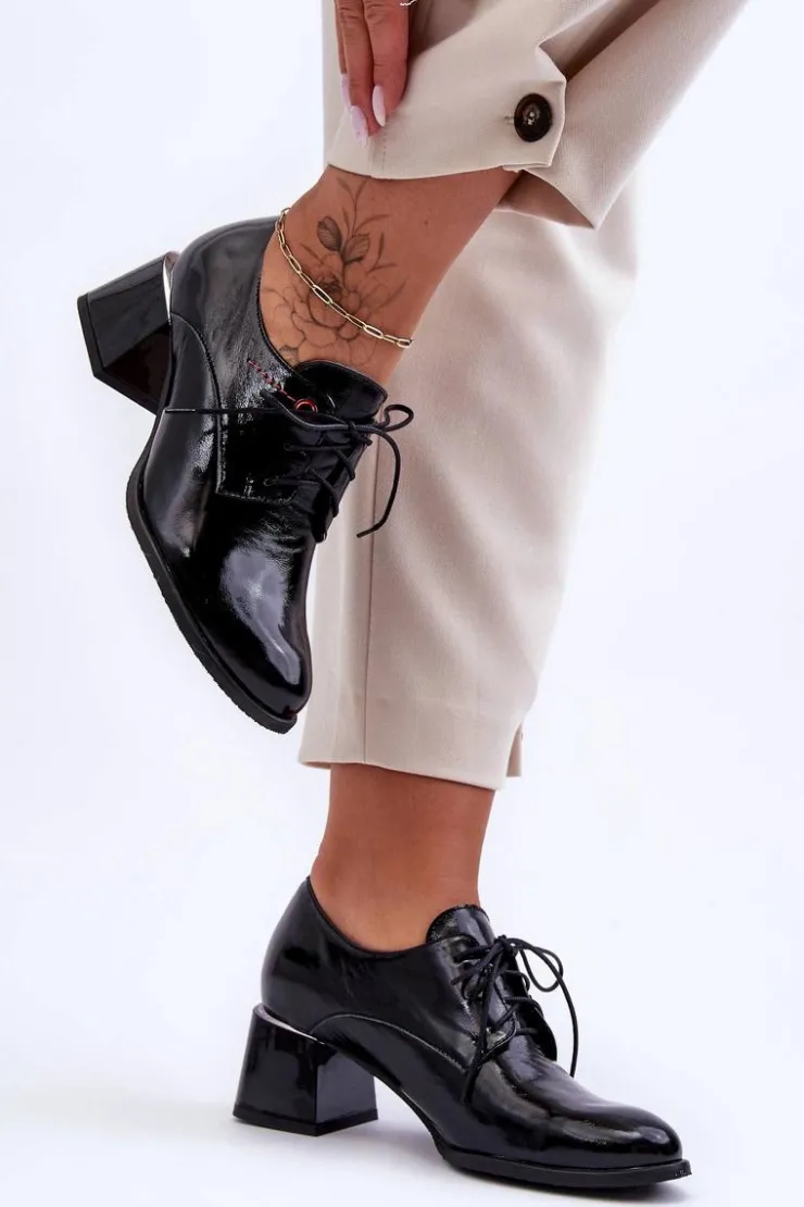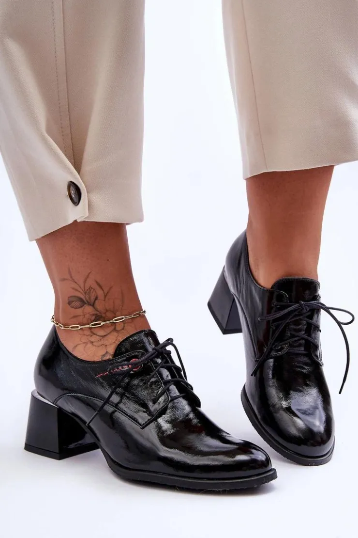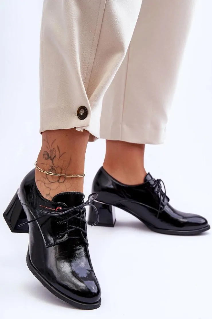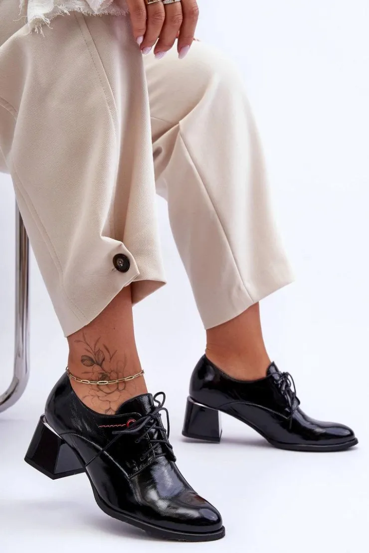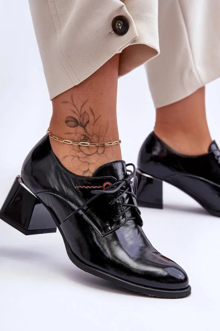 Eleganckie półbuty damskie zostały wykonane ze skóry naturalnej i osadzone na obcasie. Model ten posiada usztywniany zapiętek oraz sznurowanie. Miękka, skórzana wkładka zapewni komfortowe użytkowanie obuwia. Buty te sprawdzą się w wielu stylizacjach! Koniecznie sprawdź całą naszą kolekcję półbutów! Przy wyborze rozmiaru prosimy sugerować się tabelą rozmiarów.