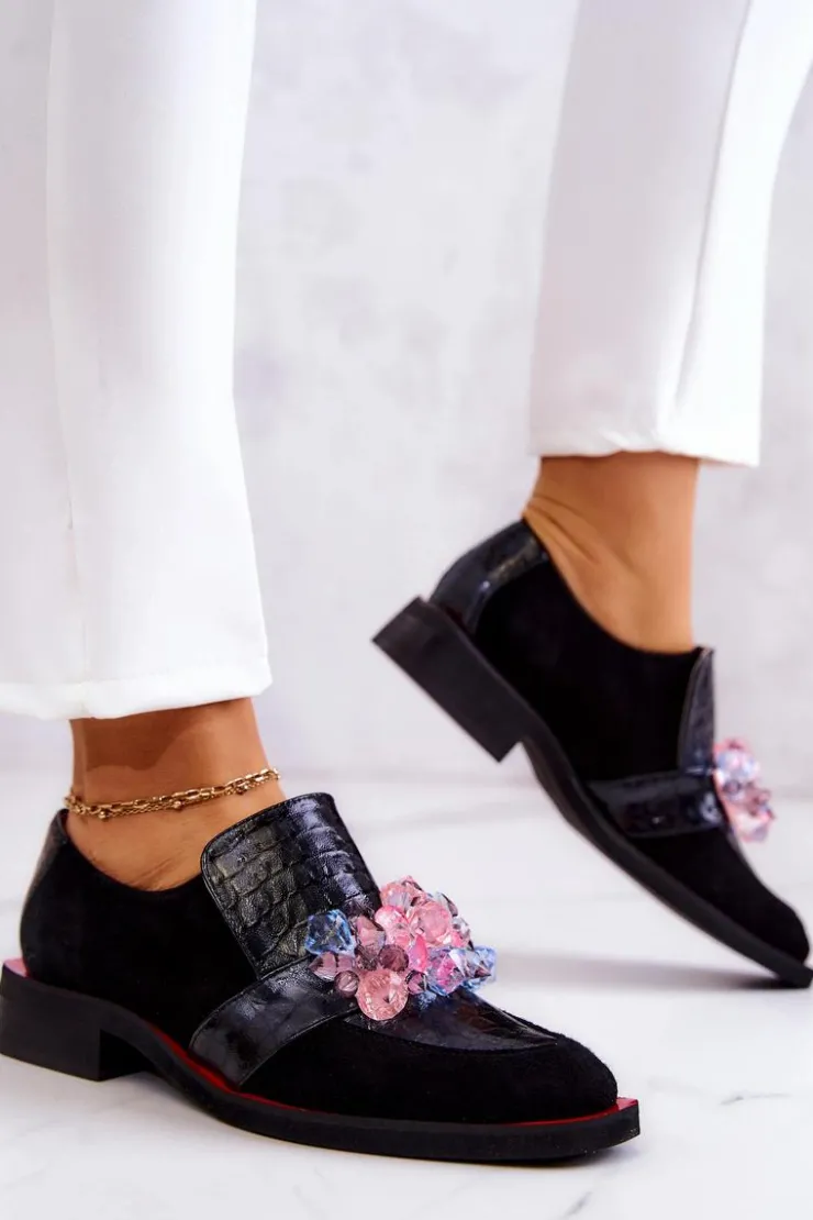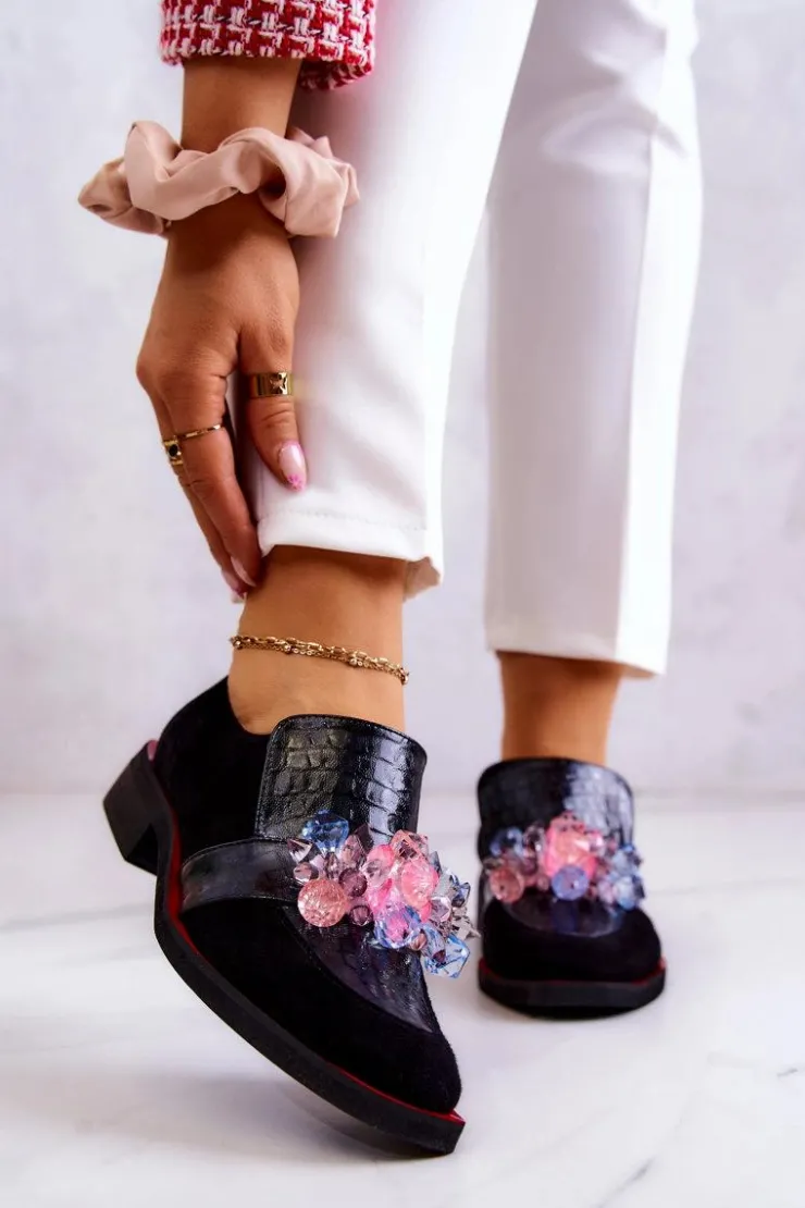 Półbuty są wykonane z naturalnej skóry. Modny krokodyli wzór na przodzie oraz tyle. Miękka wkładka z naturalnej skóry daje poczucie komfortu na każdym kroku. Buty wykonane z dbałością o szczegóły. Piękna ozdoba na przodzie nadaje butom elegancji! Buty posiadają niewysoki obcas. Nie zwlekaj i kup już dziś! Przy wyborze rozmiaru prosimy sugerować się tabelą rozmiarów.
