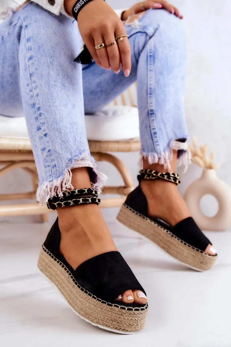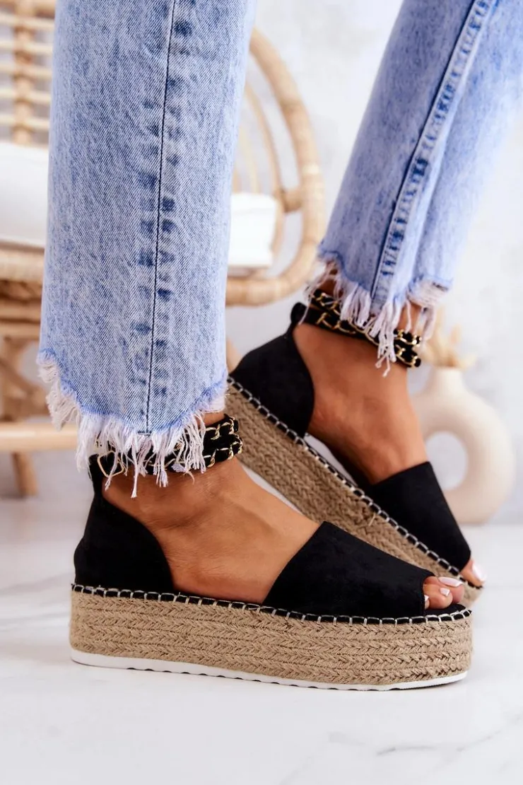 Boto Sandałki Espadryle Na Platformie Czarne Jeannie
