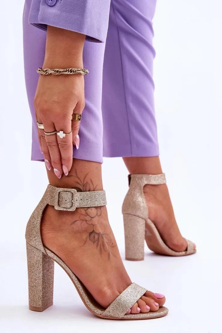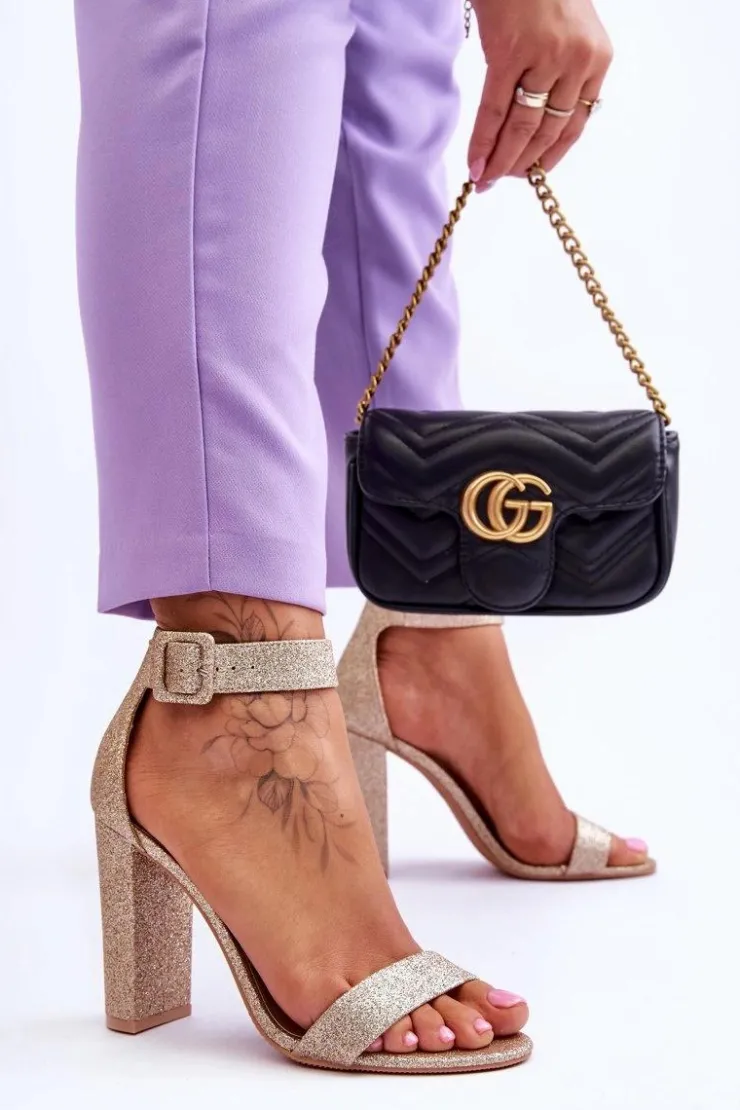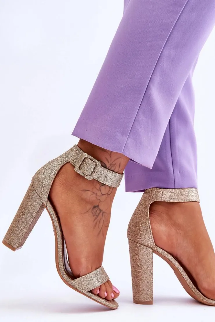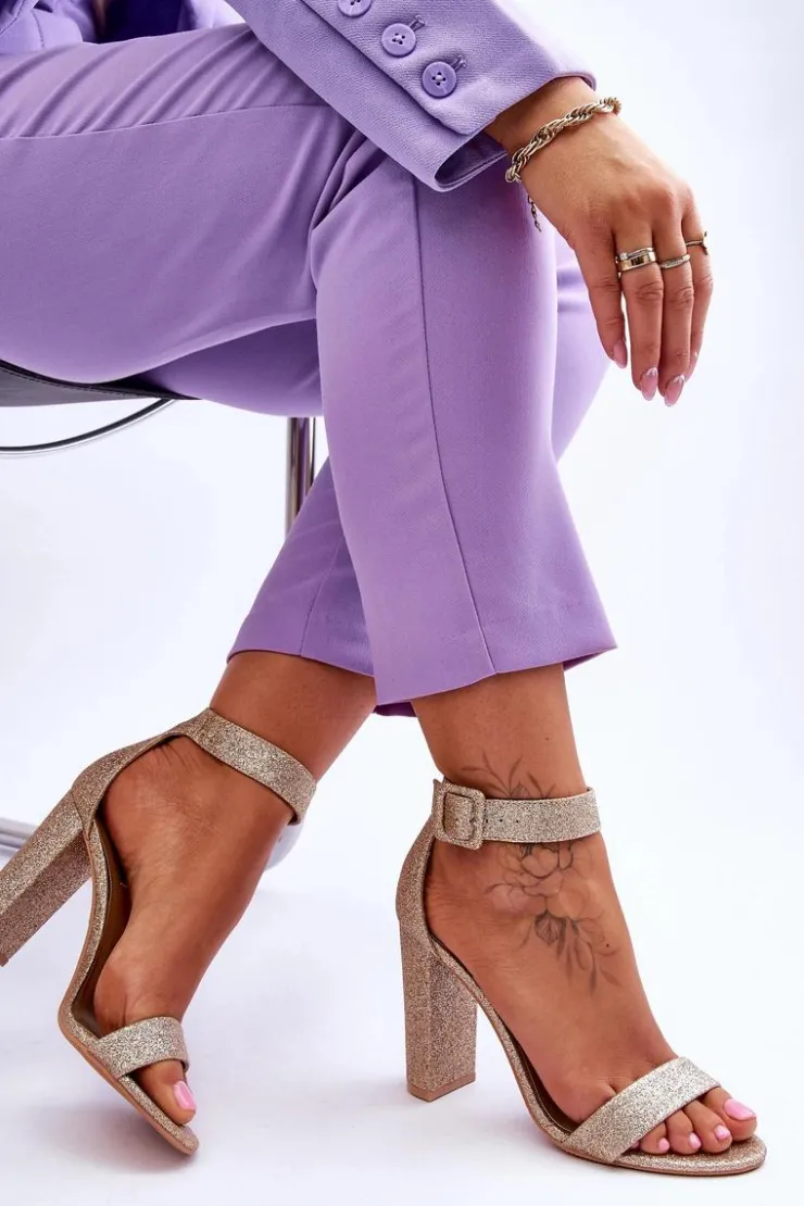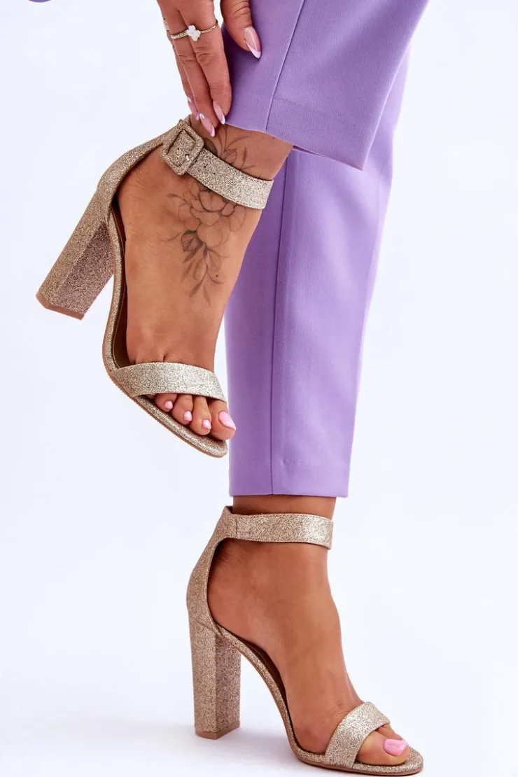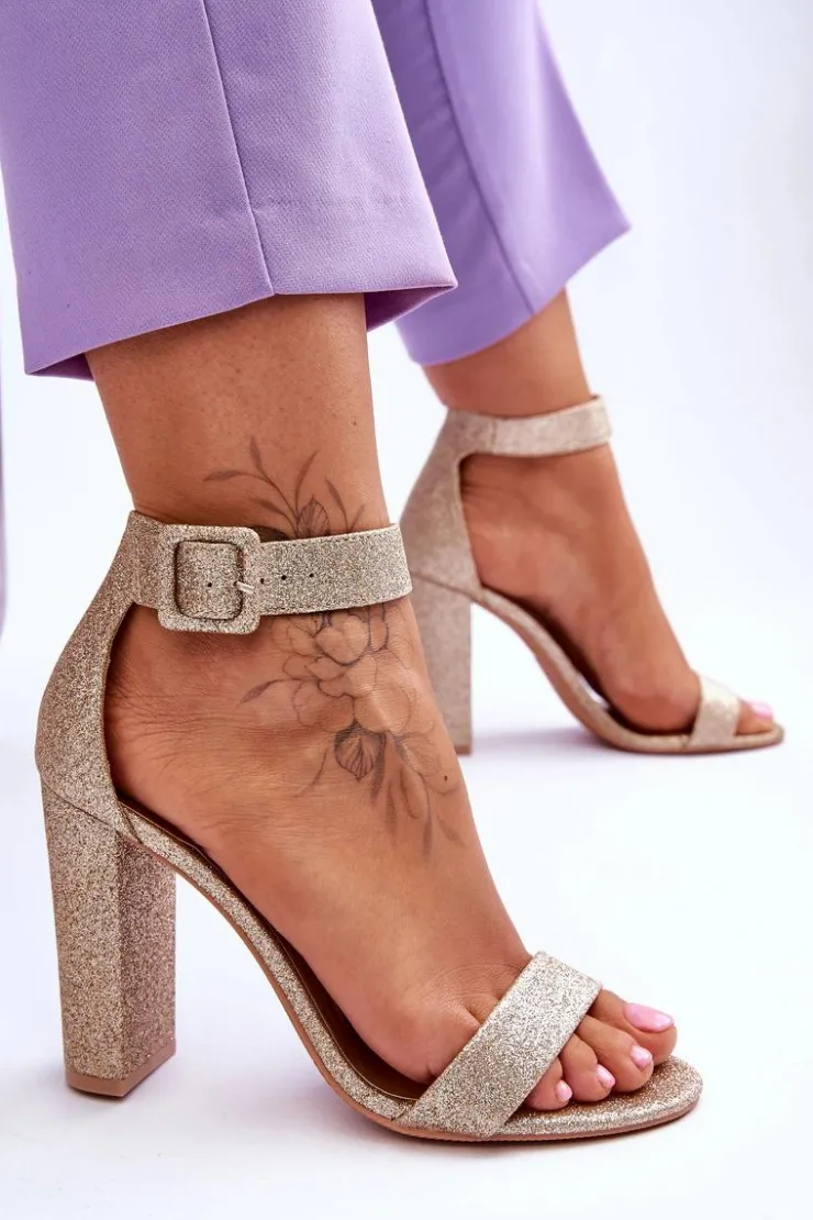 Boto Sandały Damskie Na Słupku Ciemny Złoty Brokat Joalice