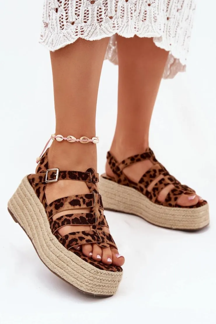 Sandały damskie z eko zamszu, osadzone na platformie z delikatnym koturnem i plecionką to doskonała propozycja na ciepłe dni. Zapinane na klamrę z regulowanym paskiem, zapewniają idealne dopasowanie do stopy. Miękka wkładka gwarantuje komfort przez cały dzień, a połączenie platformy z koturnem dodaje subtelnej wysokości i stabilności. Idealne do letnich stylizacji! Przy wyborze rozmiaru prosimy sugerować się tabelą rozmiarów.