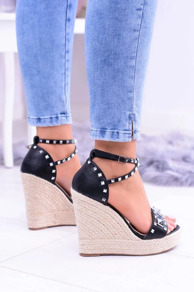Boto Sandały Na Koturnie*Damskie Czarne Sandały Ćwieki Dżety Espadryle Mariko