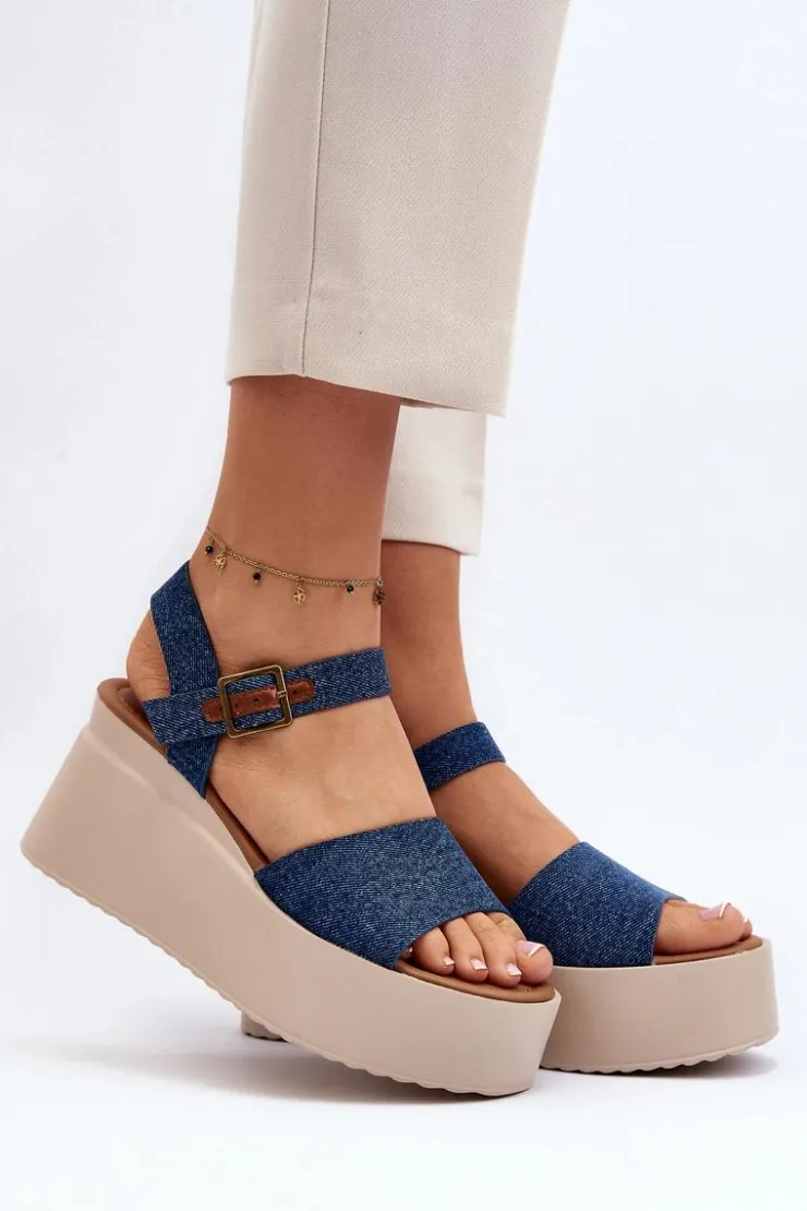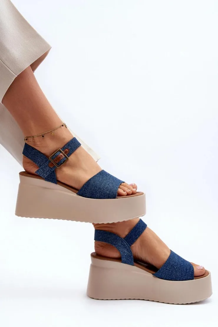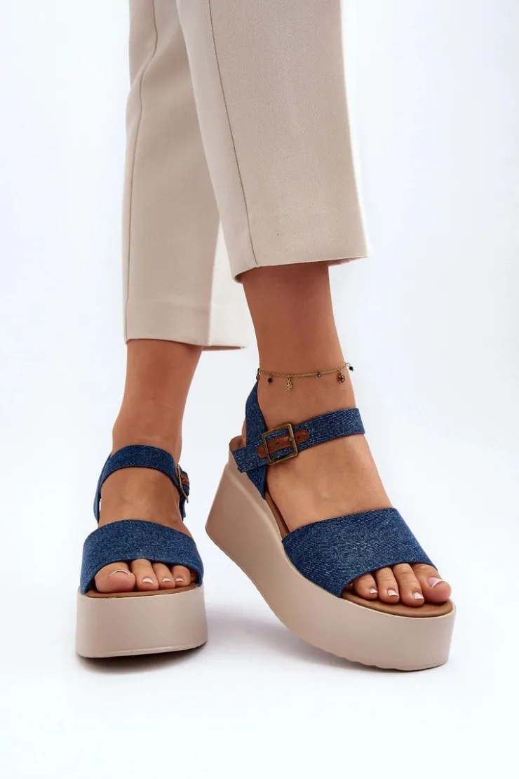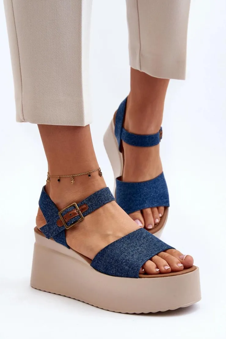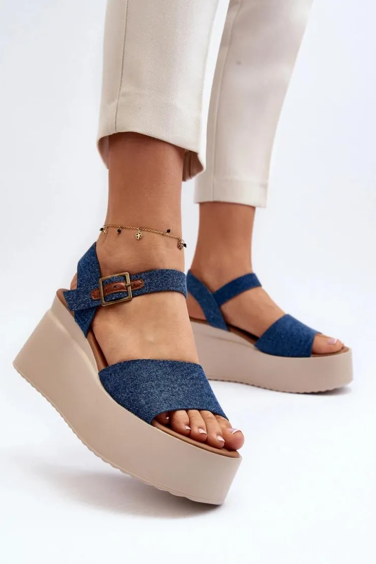 Sandały damskie wykonane z materiału tekstylnego. Osadzone na koturnie i platformie, co nie tylko dodaje im modnego wyglądu, ale także zapewnia stabilność podczas chodzenia. Zapinane na regulowany pasek ze sprzączką, łatwo dopasujesz je do swojej stopy. Przy wyborze rozmiaru prosimy sugerować się tabelą rozmiarów. Model ten będzie idealny na letnie spacery czy spotkania na świeżym powietrzu!