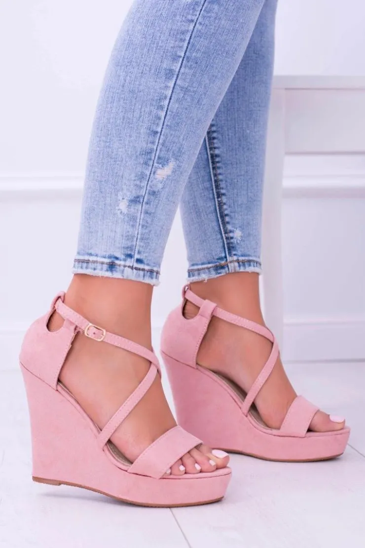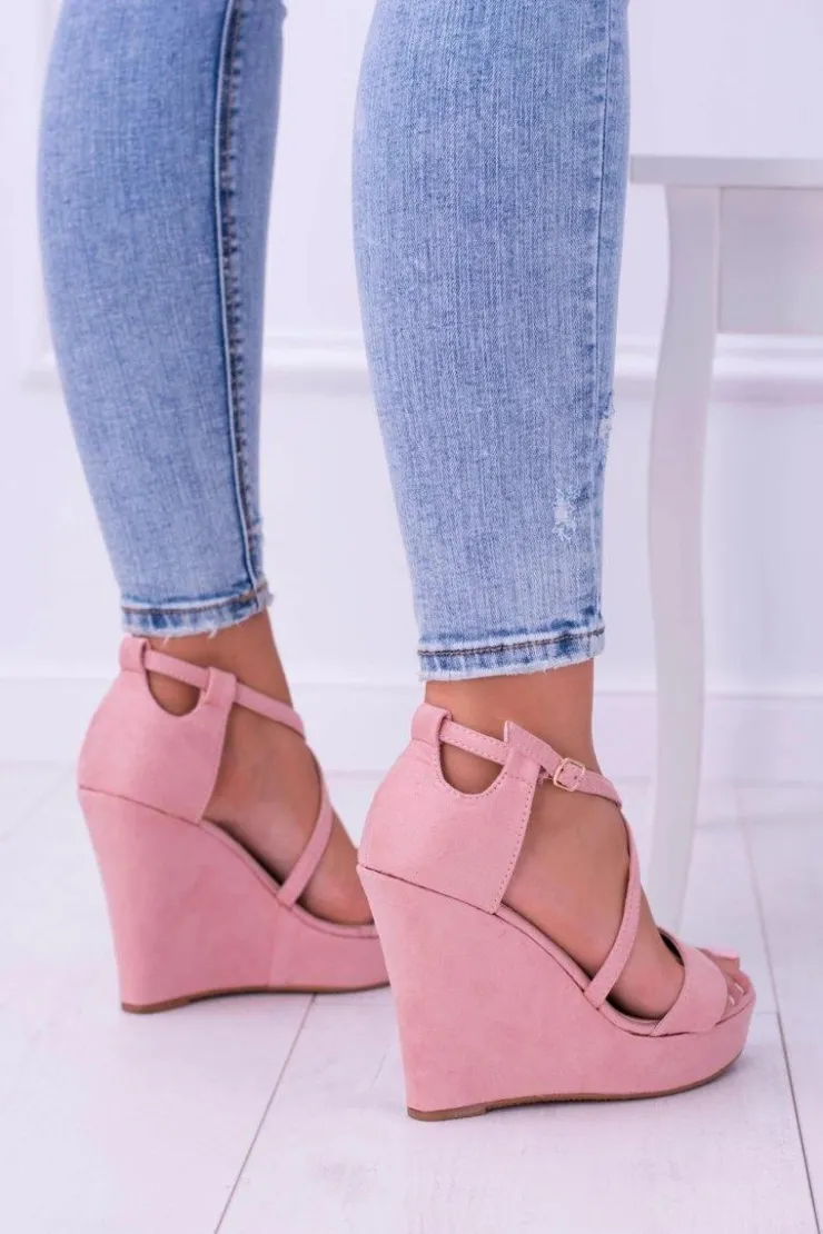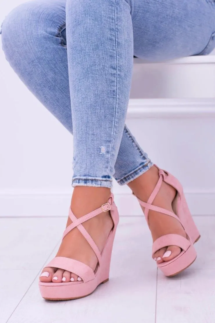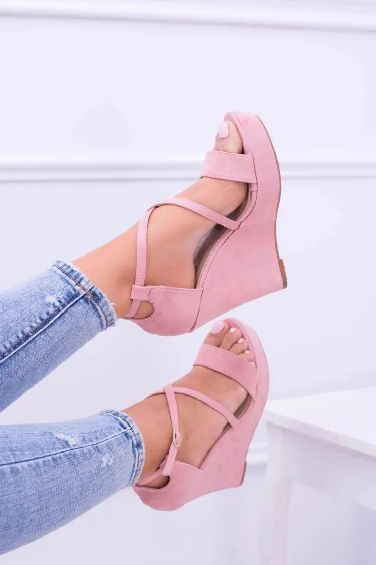 Boto Sandały Na Koturnie*Damskie Różowe Zamszowe Sandały Na Koturnie Eline