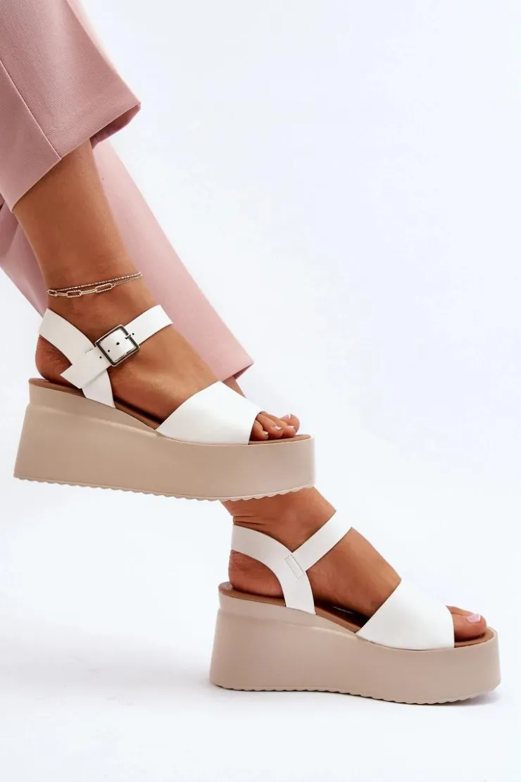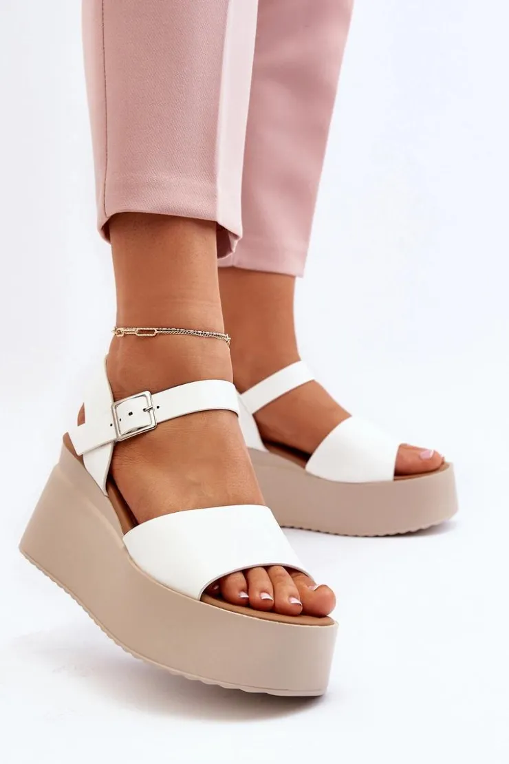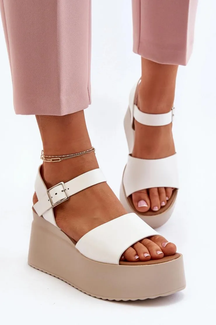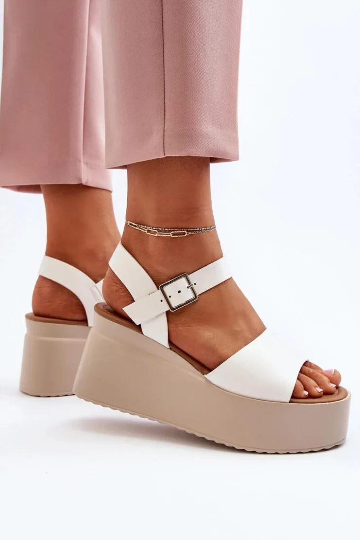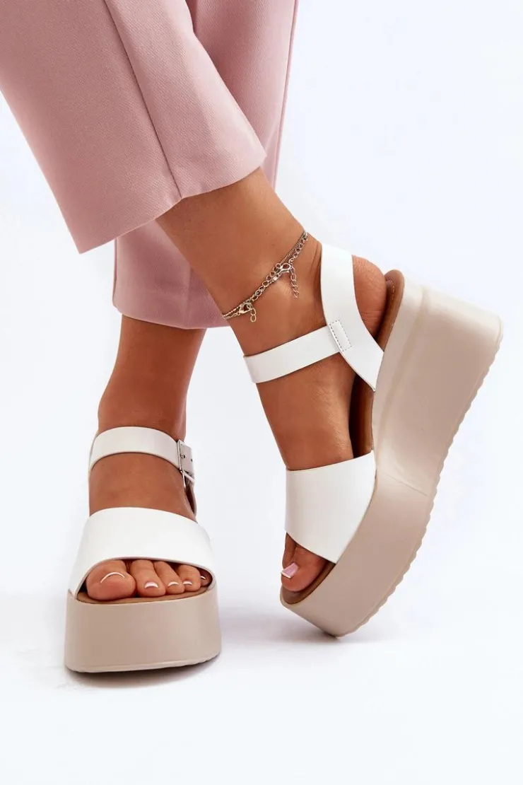 Sandały damskie wykonane z eko skóry. Osadzone na koturnie i platformie, co nie tylko dodaje im modnego wyglądu, ale także zapewnia stabilność podczas chodzenia. Zapinane na regulowany pasek ze sprzączką, łatwo dopasujesz je do swojej stopy. Przy wyborze rozmiaru prosimy sugerować się tabelą rozmiarów. Model ten będzie idealny na letnie spacery czy spotkania na świeżym powietrzu!