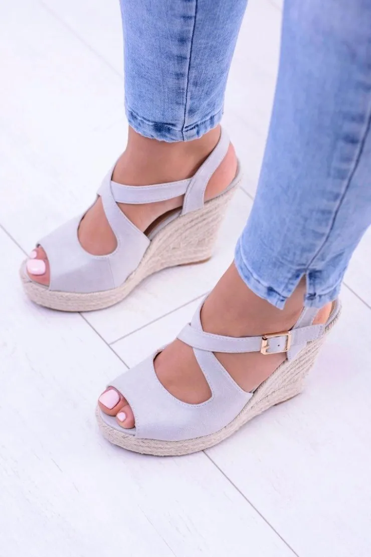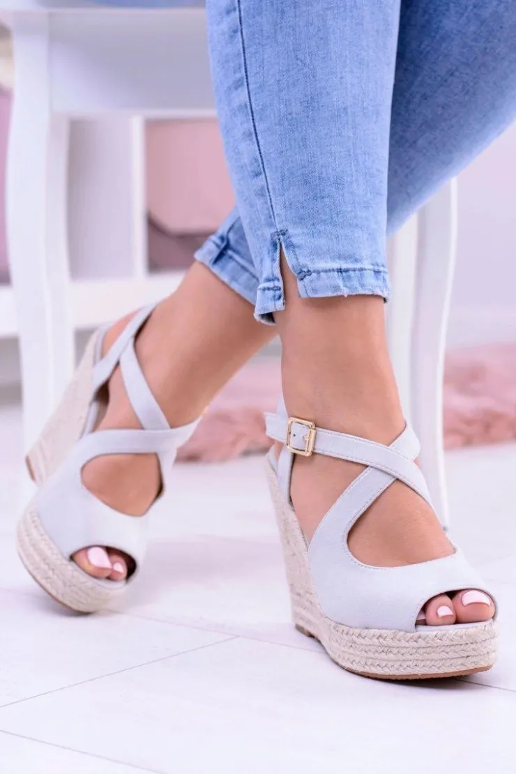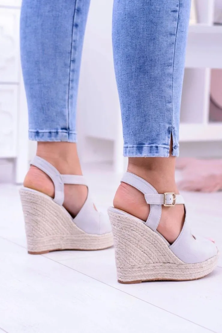 Boto Sandały Na Koturnie*Damskie Szare Sandały Na Koturnie Espadryle Elonore