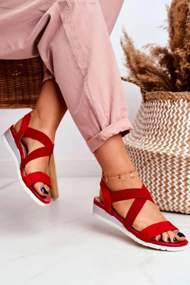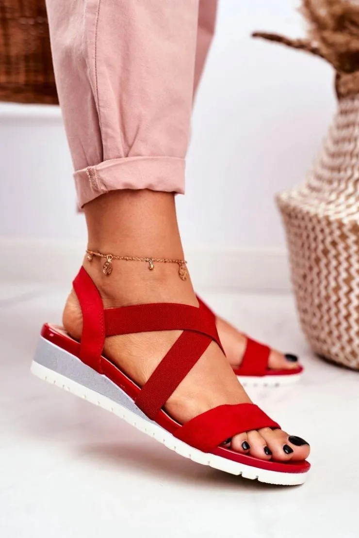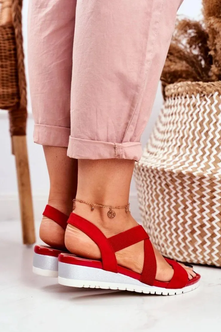 Boto Sandały Na Koturnie*Sandałki Damskie Na Koturnie Czerwone Wsuwane Harper