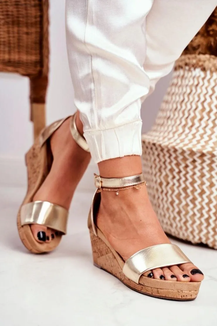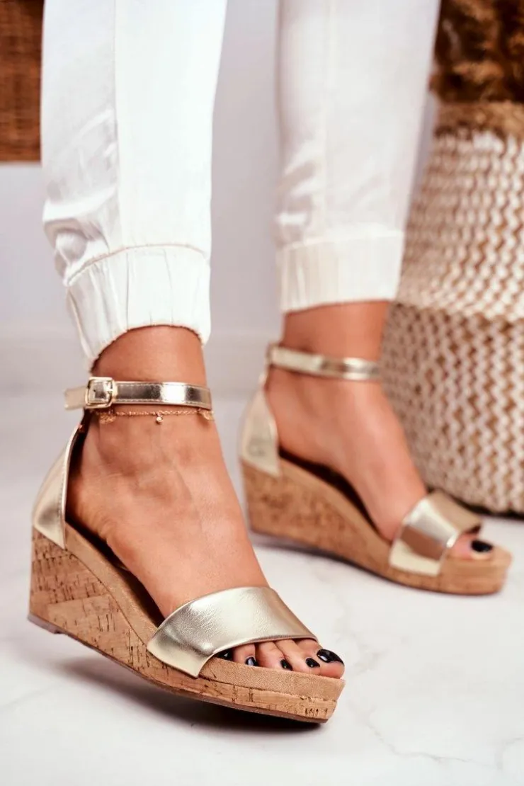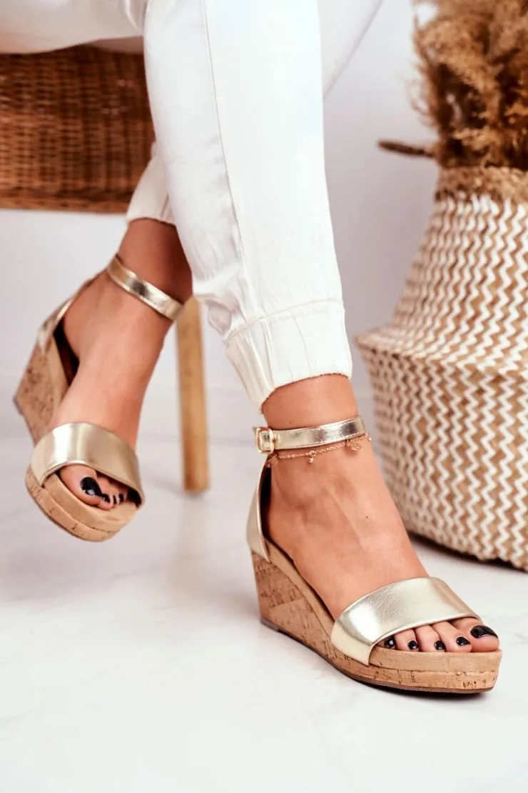 Boto Sandały Na Koturnie*Sandałki Damskie Na Koturnie Złote MarryMe