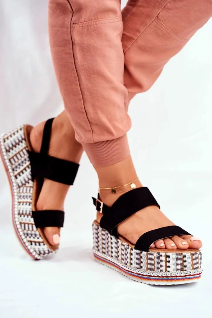 Boto Sandały Na Koturnie*Sandałki Damskie Na Platformie Czarne Sandy