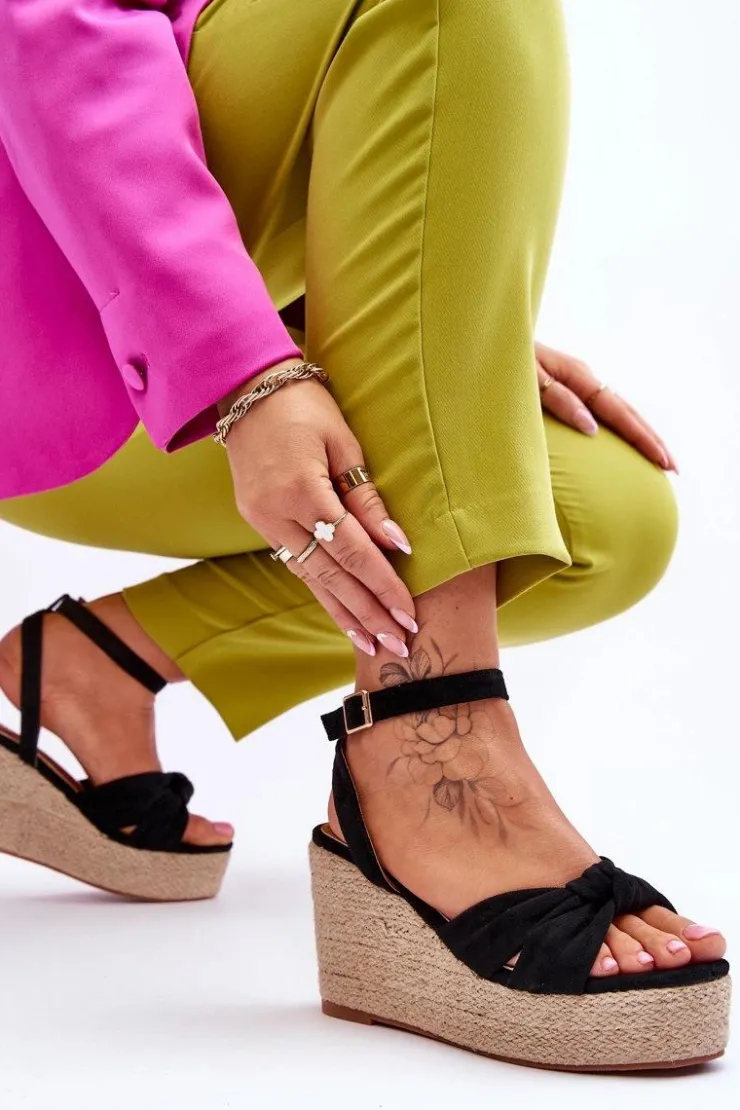 Boto Sandały Na Koturnie*Sandały Damskie Na Koturnie Czarne Kendall