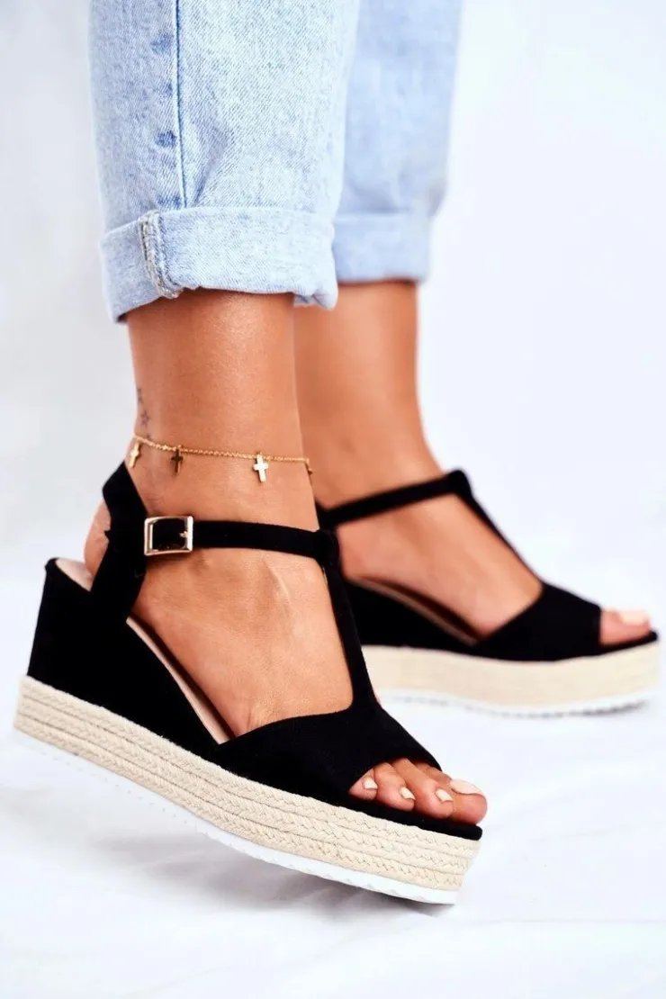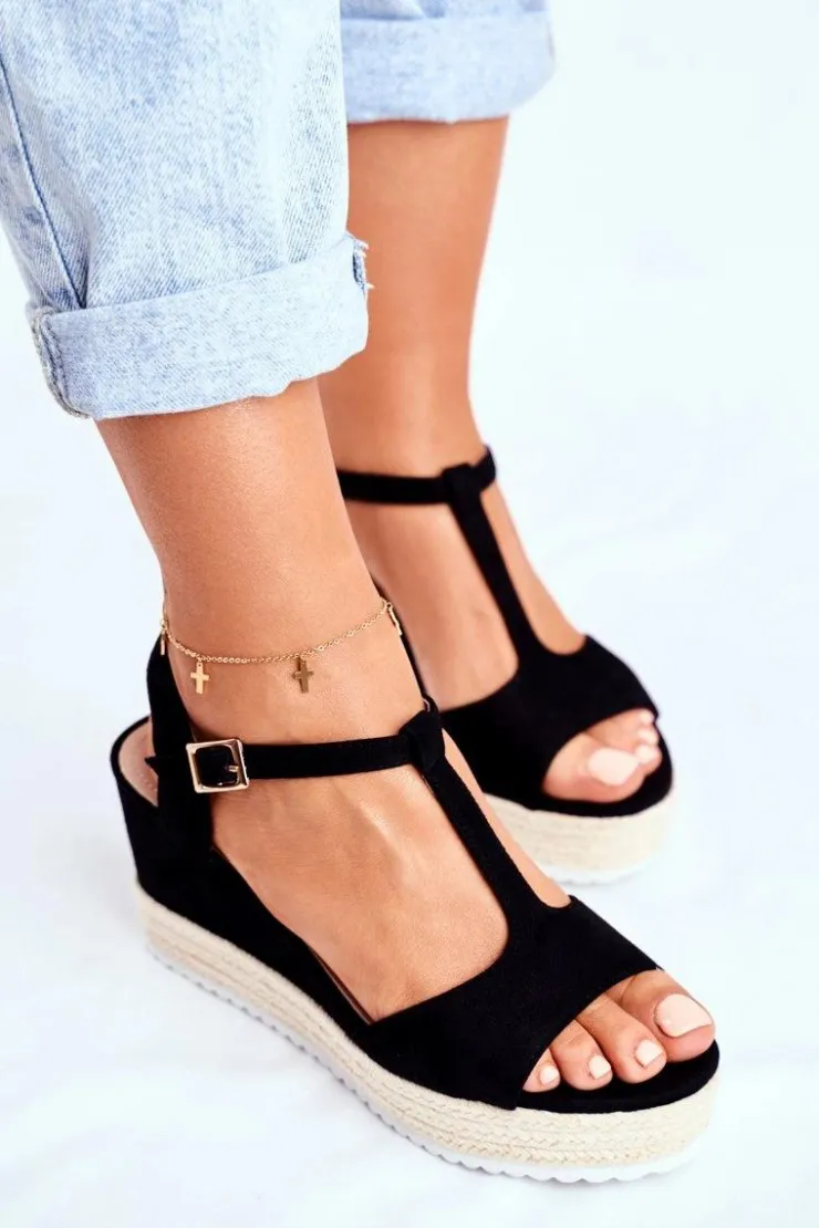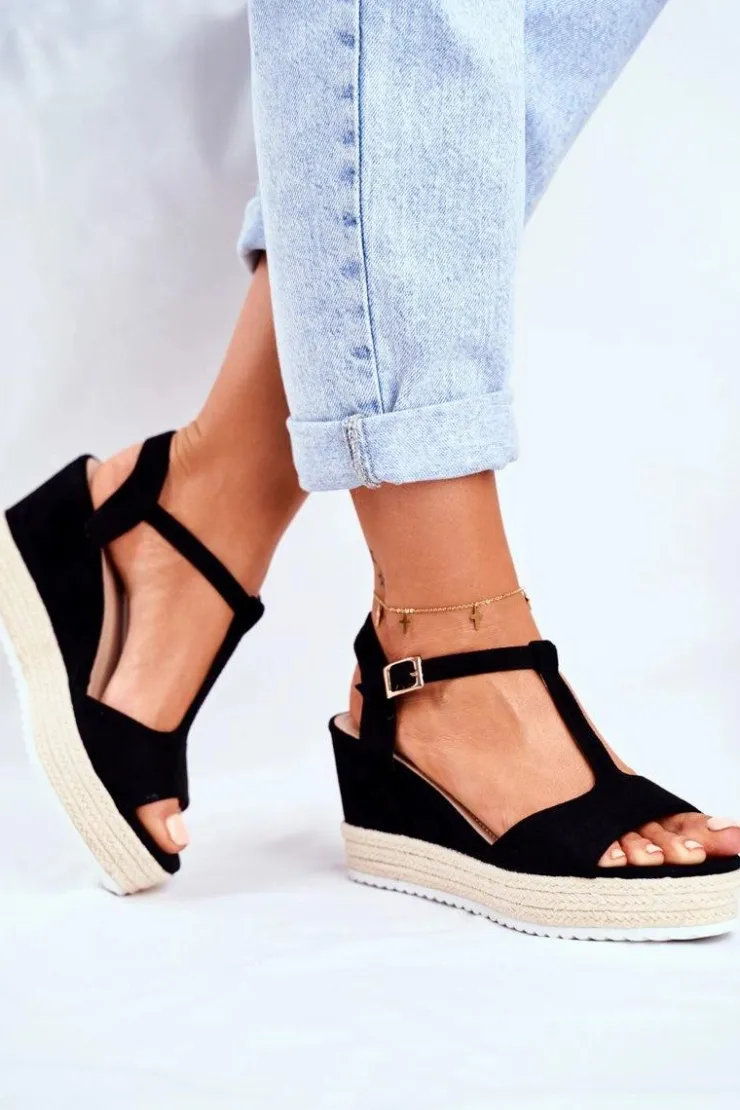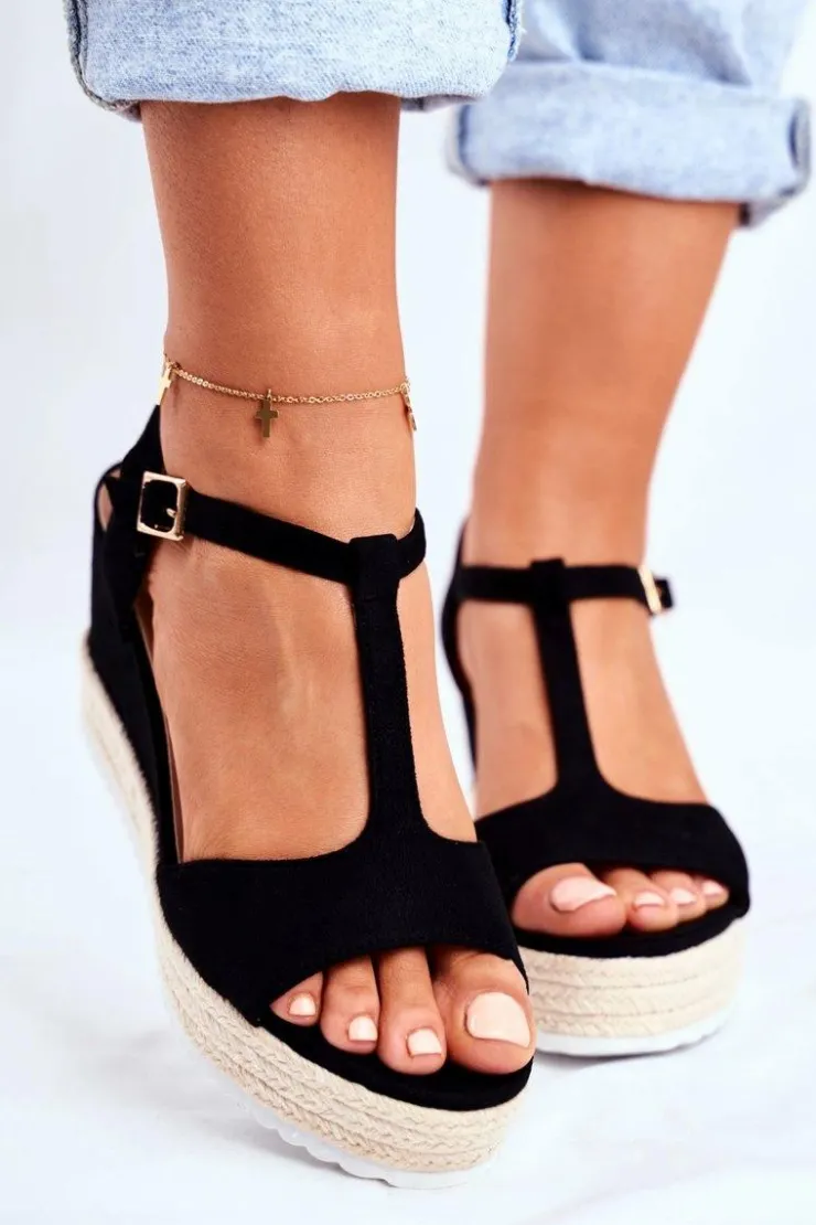 Boto Sandały Na Koturnie*Sandały Damskie Na Koturnie Czarne Papillon