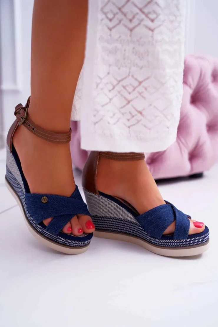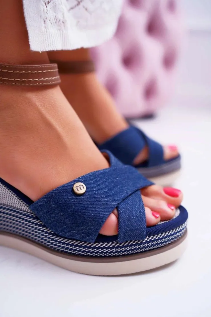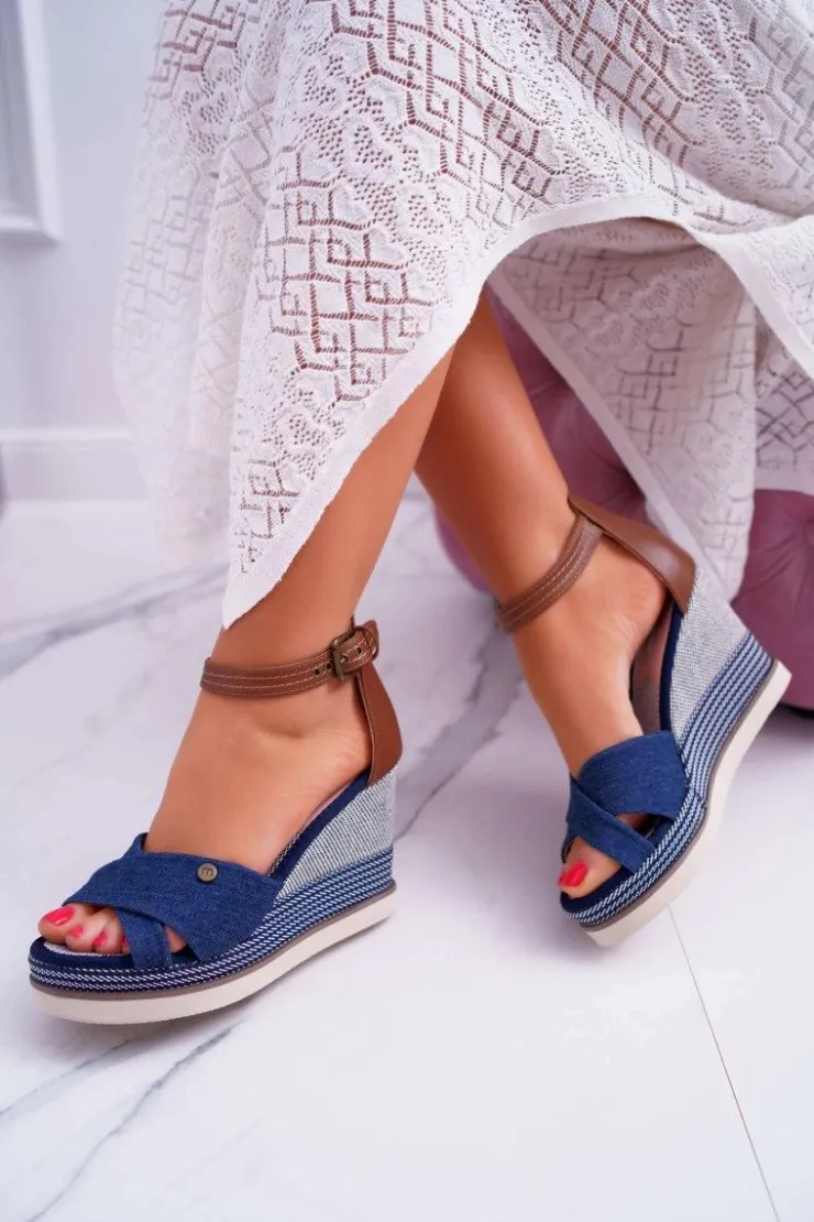Boto Sandały Na Koturnie*Sandały Damskie Na Koturnie Jeans Granatowe DoThis!