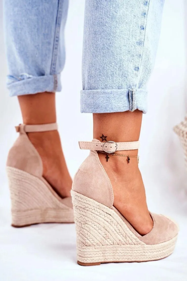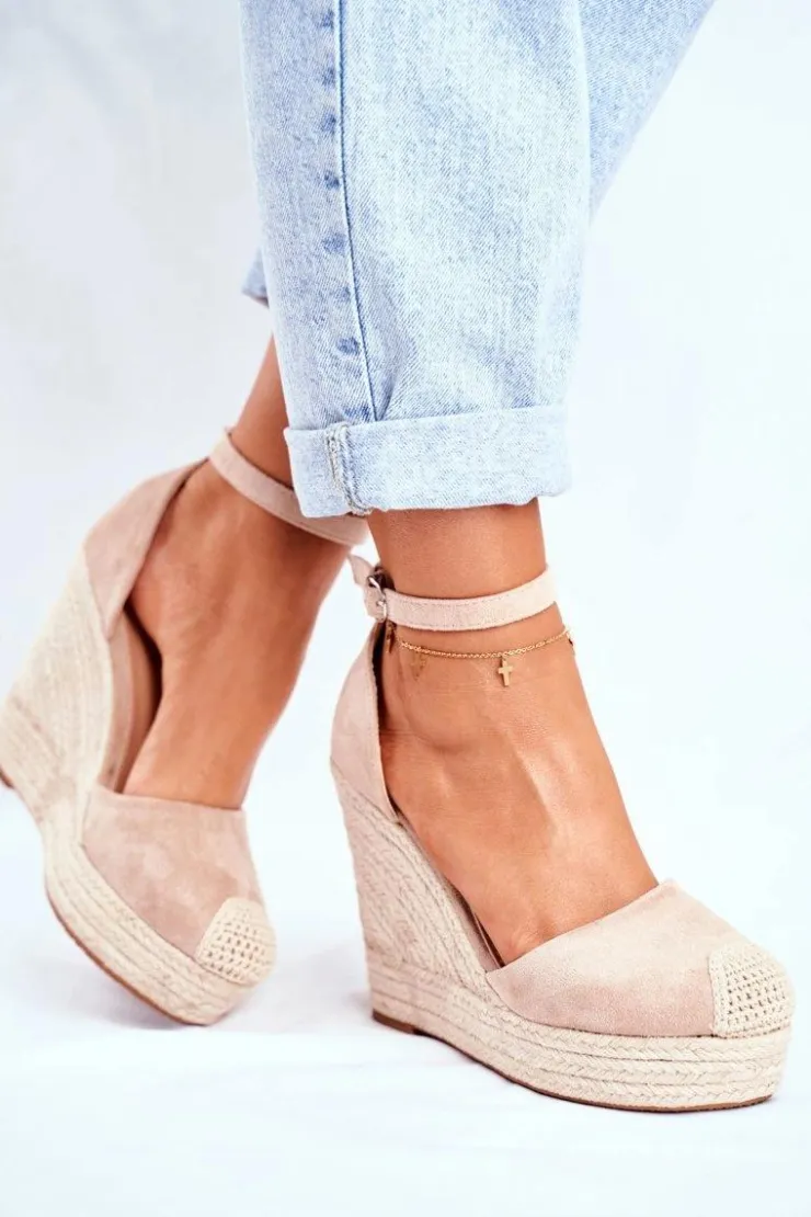 Boto Sandały Na Koturnie*Sandały Damskie Na Koturnie Lniane Beżowe Avocado