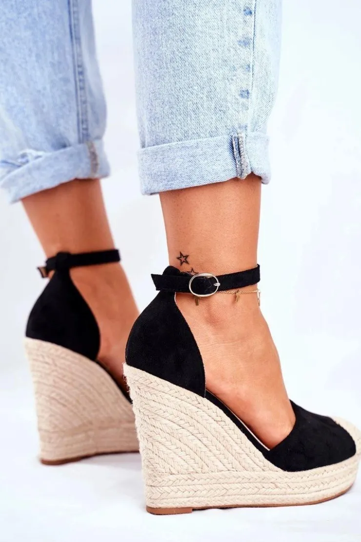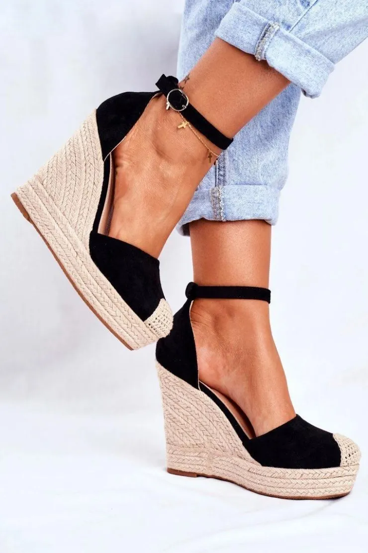 Boto Sandały Na Koturnie*Sandały Damskie Na Koturnie Lniane Czarne Avocado