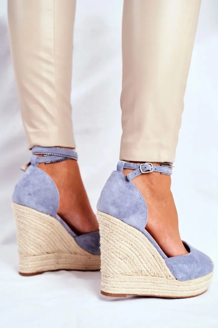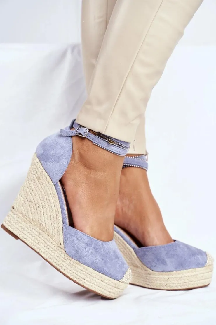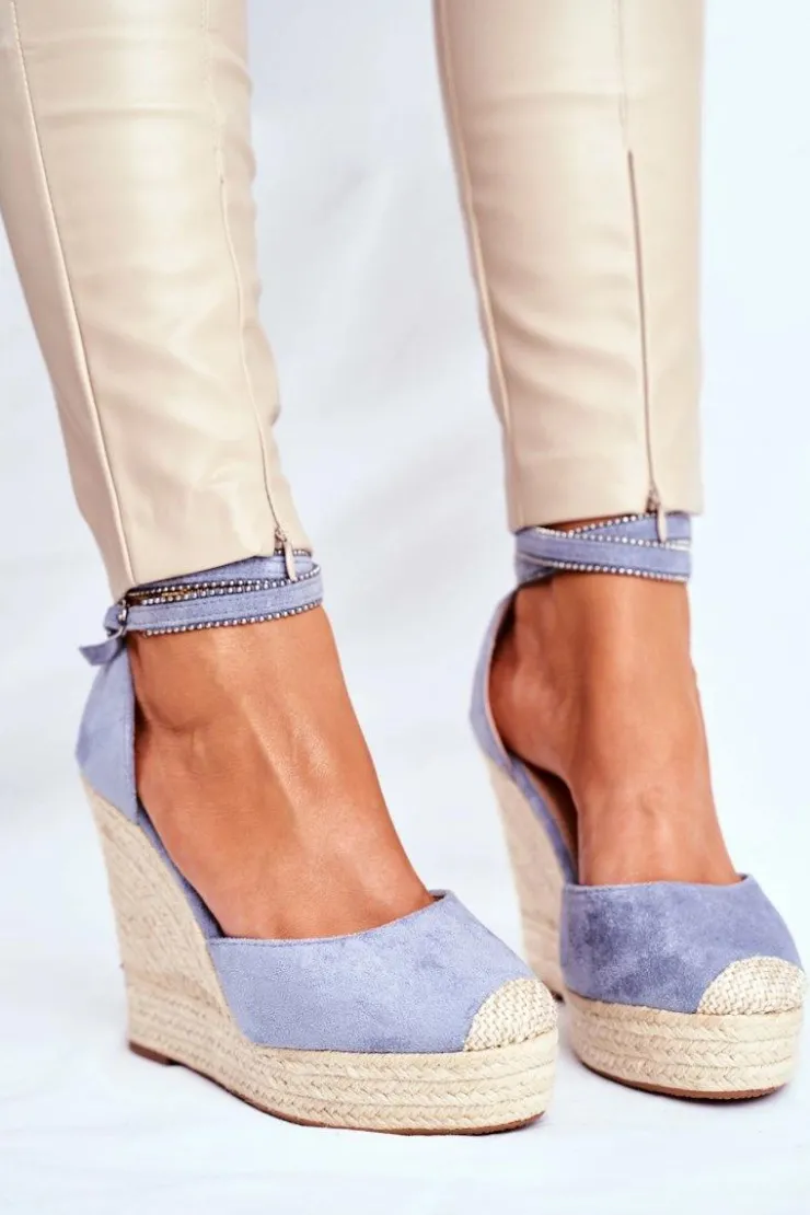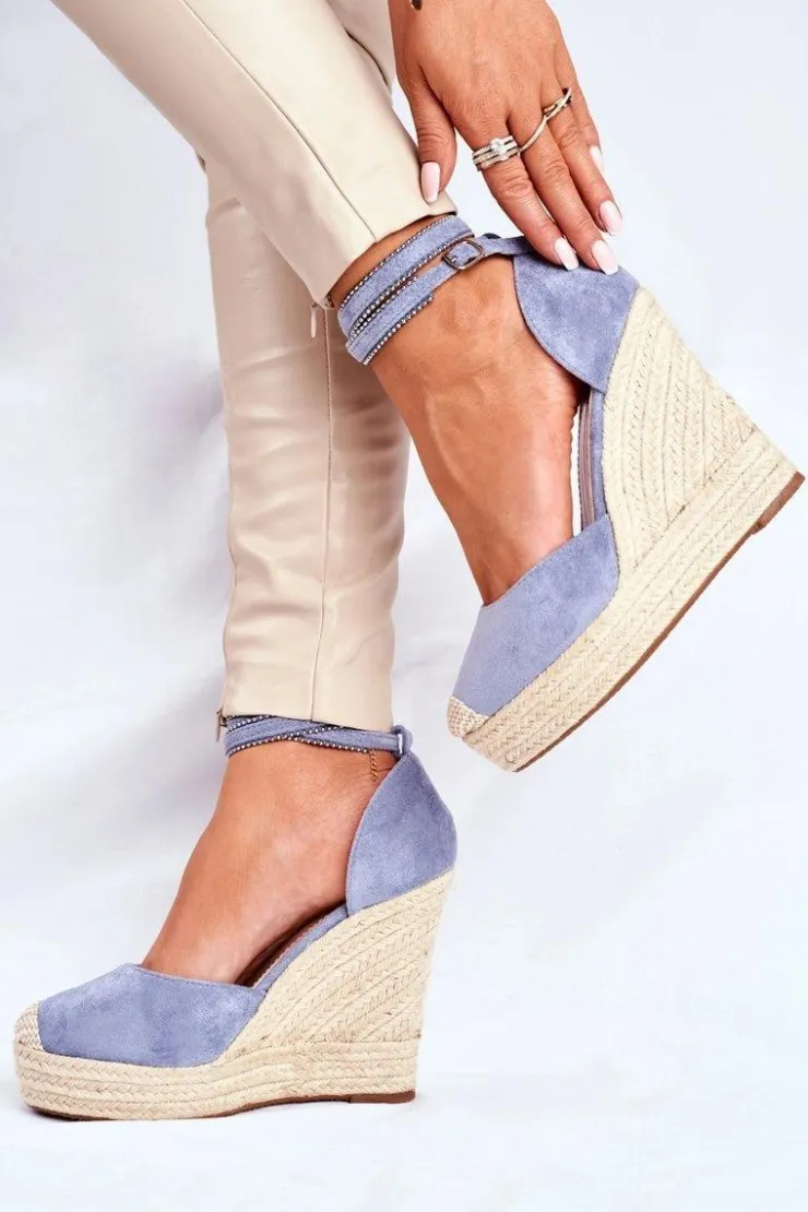 Boto Sandały Na Koturnie*Sandały Damskie Na Koturnie Lniane Niebieskie Canterola