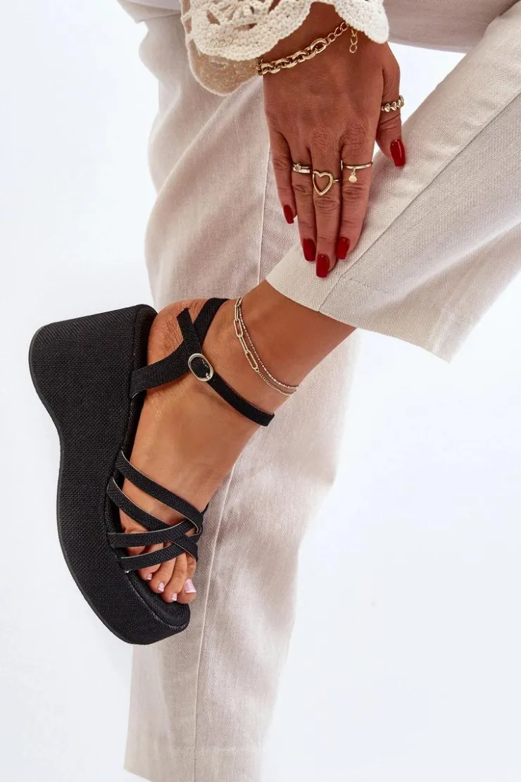 Sandały damskie na platformie i koturnie to nie tylko modne obuwie, ale także gwarancja wygody przez cały dzień. Ich regulowany pasek ze sprzączką zapewnia odpowiednie dopasowanie, a niezwykle miękka wkładka sprawia, że chodzenie w nich to czysta przyjemność, nawet przy długotrwałym użytkowaniu. Te sandały stanowią doskonałe uzupełnienie zwiewnej sukienki lub spódniczki, dodając letniej stylizacji niepowtarzalnego uroku. Przy wyborze rozmiaru prosimy kierować tabelą rozmiarów.