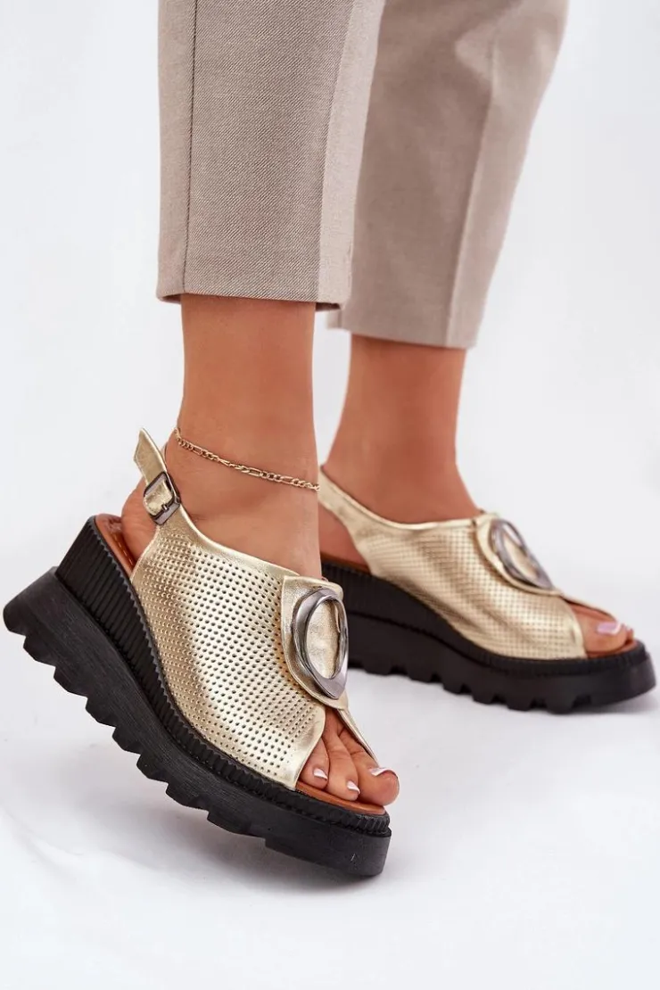 Eleganckie sandały damskie wykonane z naturalnej skóry to doskonała propozycja na ciepłe dni. Osadzone na koturnie, zapewniają wygodę oraz stabilność przez cały dzień. Model wyróżnia się ozdobą z przodu, która nadaje im wyjątkowego charakteru. Skórzana wkładka gwarantuje komfort, a podeszwa z bieżnikiem zapewnia odpowiednią przyczepność, sprawiając, że te sandały łączą elegancję z funkcjonalnością. Idealne do letnich stylizacji, zarówno na co dzień, jak i na specjalne okazje. Przy wyborze rozmiaru prosimy sugerować się tabelą rozmiarów.