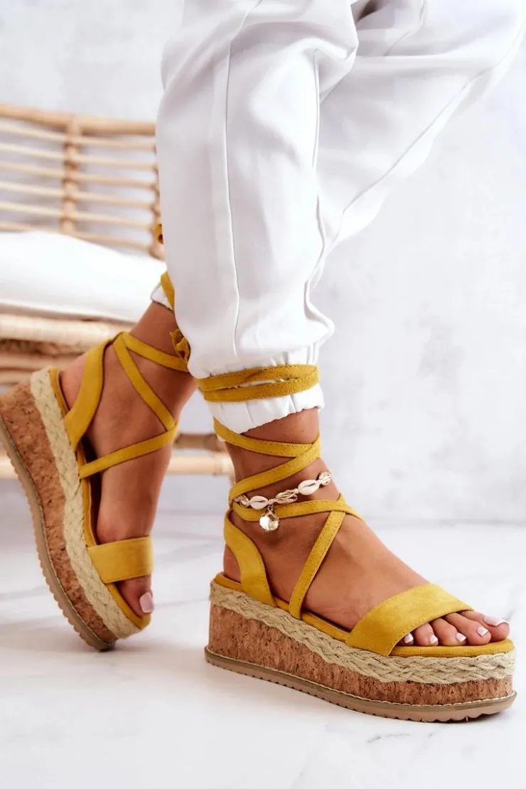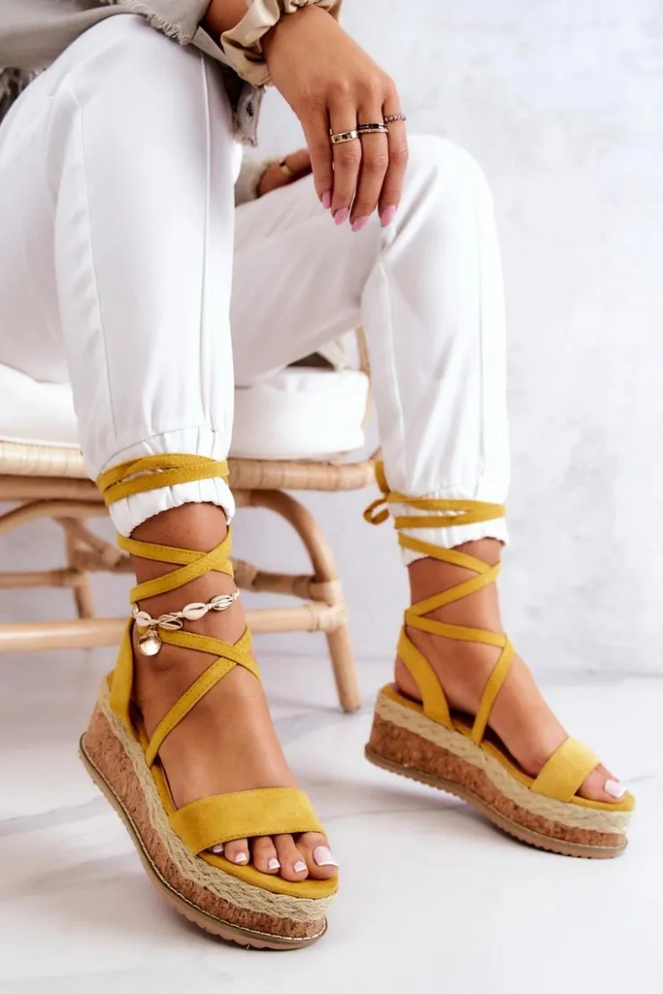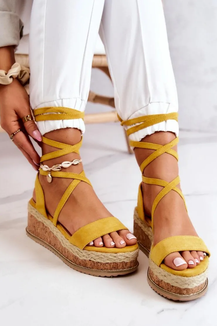 Boto Sandały Na Koturnie*Zamszowe Sandałki Espadryle Na Koturnie Żółte Shanny