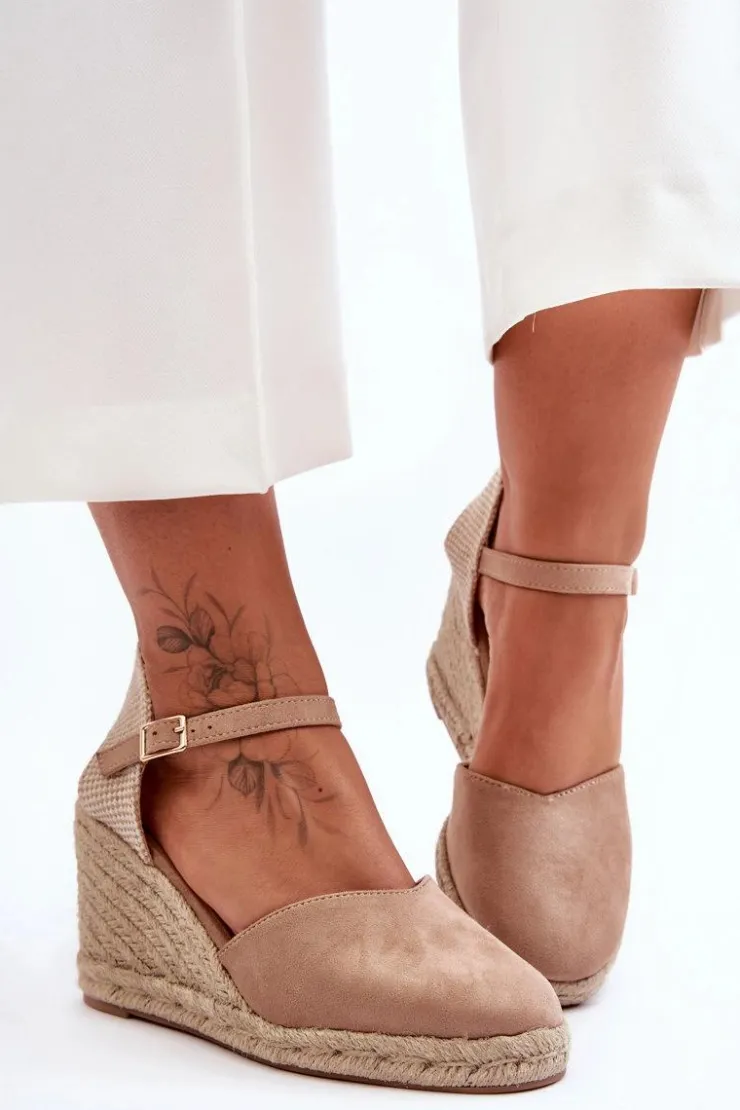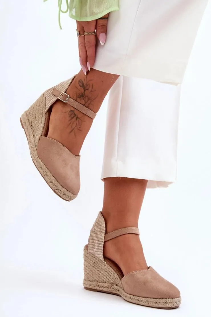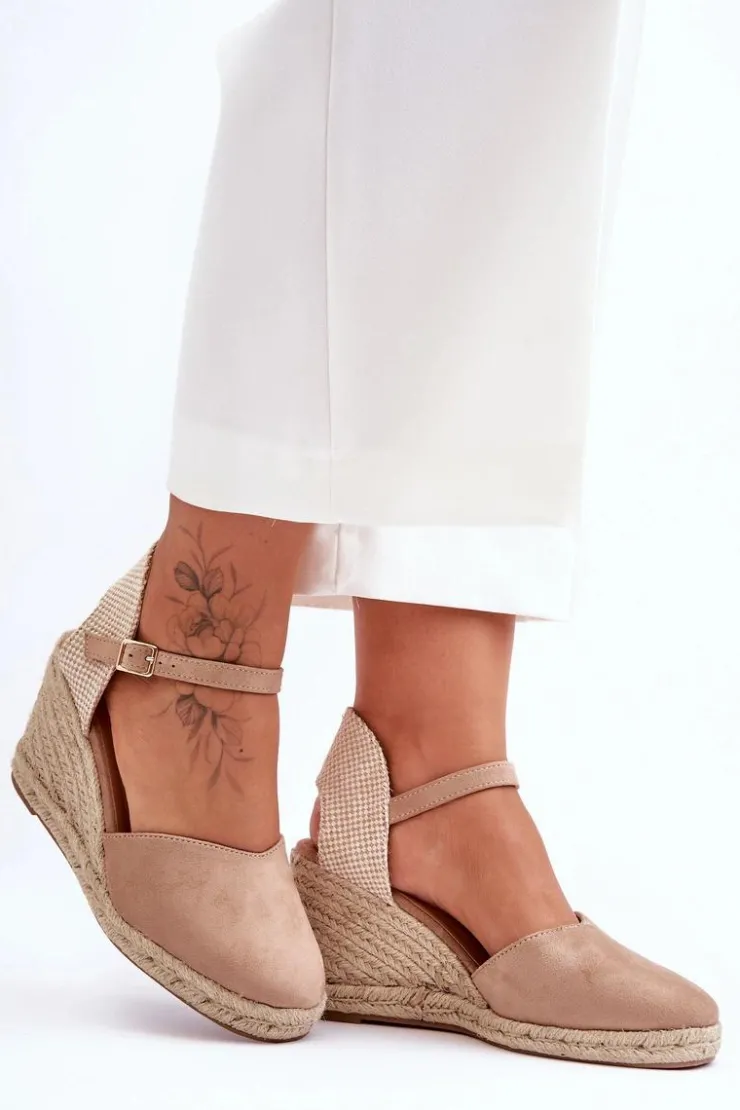 Modne sandały damskie zostały wykonane z połączenia eko zamszu oraz tkaniny. Sandałki te posiadają zapinanie w postaci regulowanego paska. Koturn i platforma zostały ozdobione jutową plecionką. Podeszwa w tych butach jest gumowa i antypoślizgowa. Miękka wkładka zadba o Twój komfort i wygodę. Przy wyborze rozmiaru prosimy sugerować się tabelą rozmiarów.