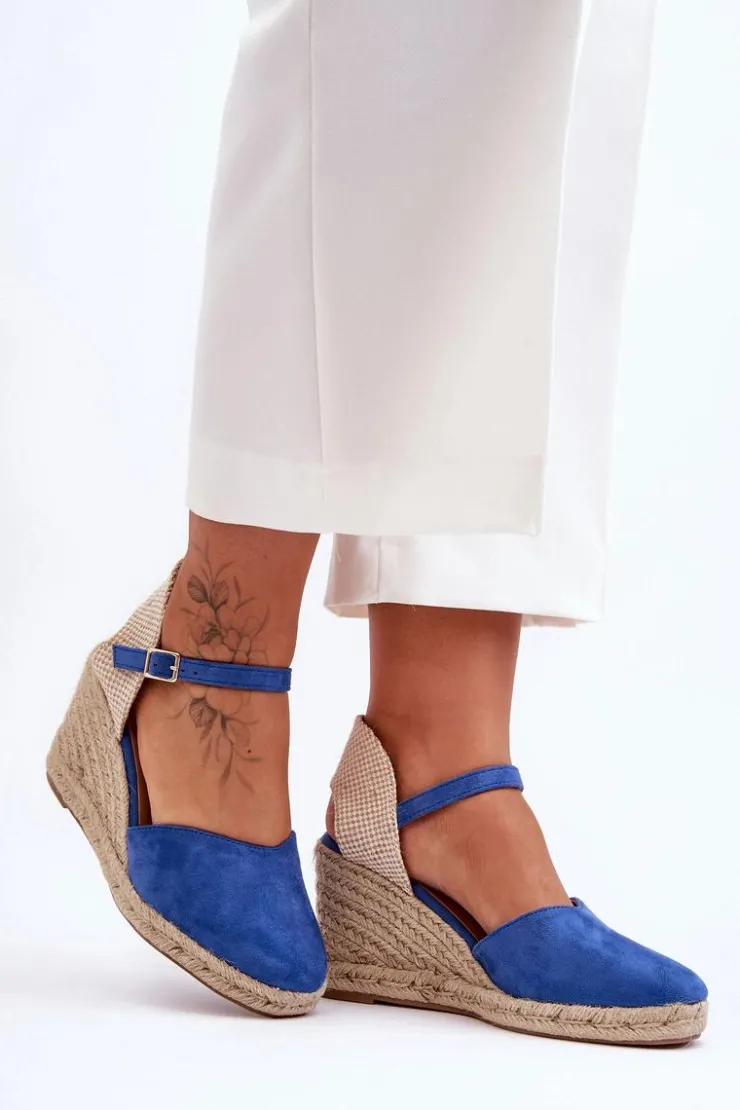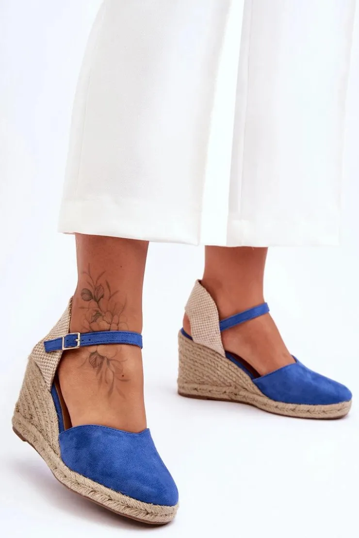 Boto Sandały Na Koturnie*Zamszowe Sandały Na Koturnie Niebieskie Selfoss