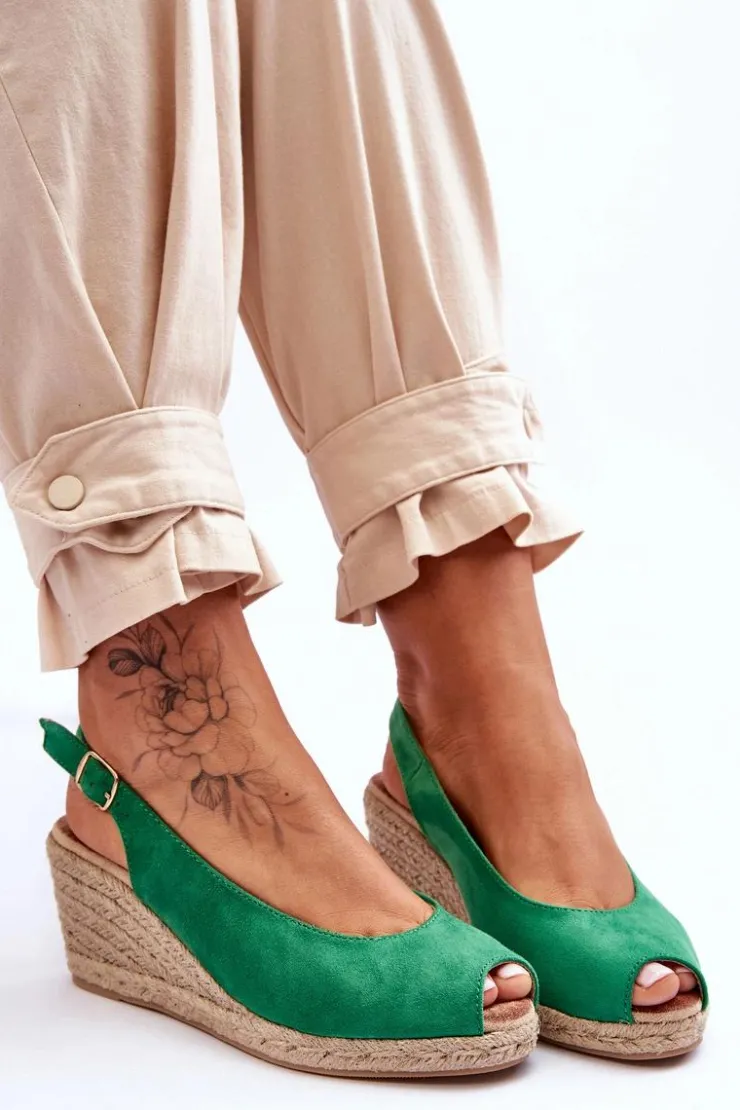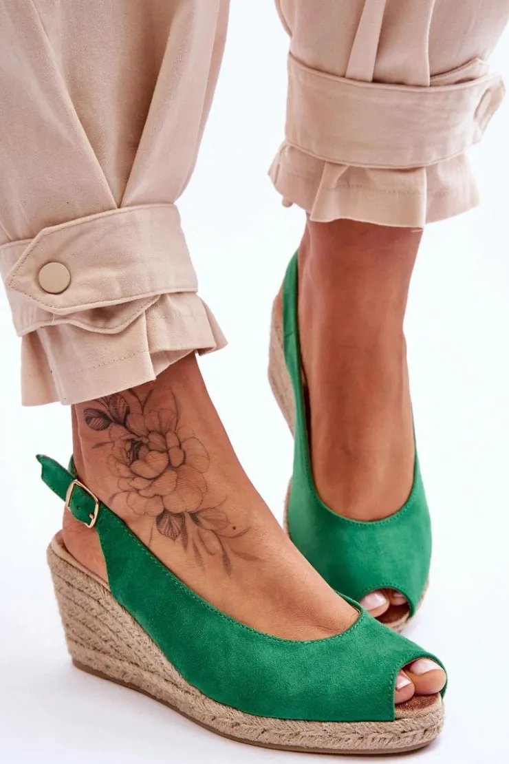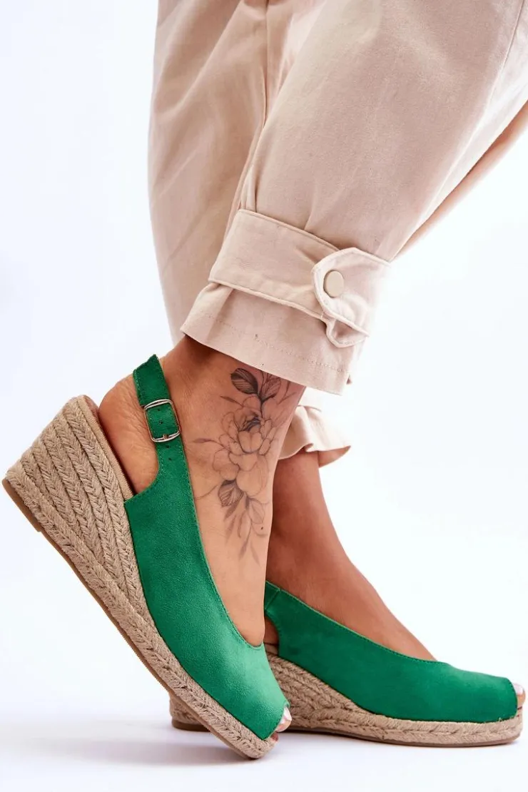 Sandały damskie zostały wykonane z eko zamszu. Posiadają regulowany pasek zapinany na sprzączkę. Sandałki osadzono na koturnie zdobionym jutową plecionką. Podeszwa jest gumowa i antypoślizgowa. Miękka, eko zamszowa wkładka zadba o Twój komfort i wygodę. Sandały świetnie sprawdzą się w letnich stylizacjach. Przy wyborze rozmiaru prosimy sugerować się tabelą rozmiarów.