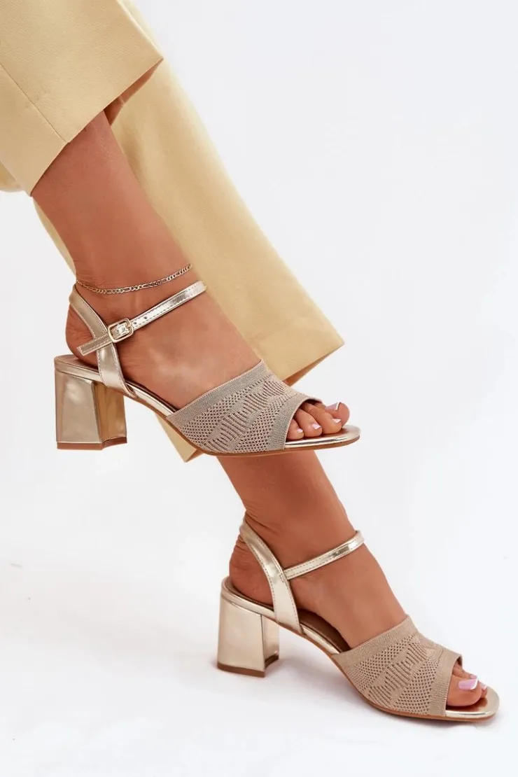 Sandały damskie wykonane z połączenia eko skóry i materiału tekstylnego. Obcas w formie słupka zapewnia stabilność i wygodę, a regulowany pasek ze sprzączką pozwala na idealne dopasowanie do stopy. Miękka wkładka gwarantuje komfort noszenia przez cały dzień. Idealne do letnich stylizacji, zarówno na co dzień, jak i na specjalne okazje. Przy wyborze rozmiaru prosimy sugerować się tabelą rozmiarów.