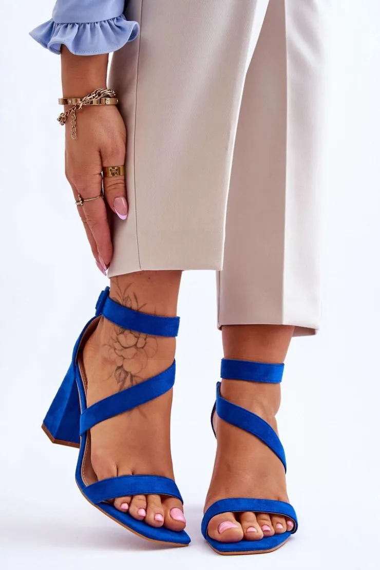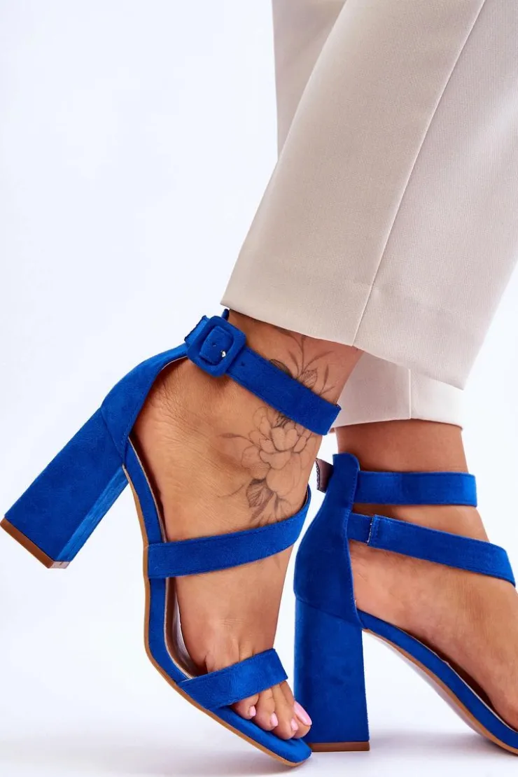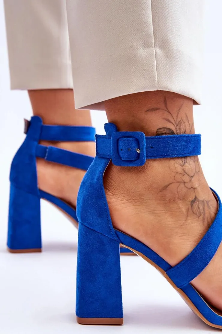 Modne sandałki damskie na obcasie w postaci słupka. Wykonane z eko zamszu z dodatkowym paseczkiem przechodzącym przez środek obuwia. Zapinane wokół kostki na regulowany pasek ze sprzączką. Wkładka z eko skóry jest miękka i wygodna w użytkowaniu. Buty te świetnie sprawdzą się w upalne dni podczas randki, uroczystości czy ważnego spotkania. Przy wyborze rozmiaru prosimy sugerować się tabelą rozmiarów.