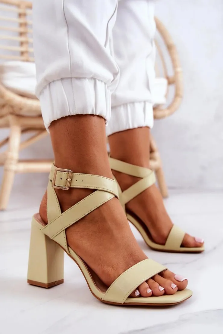 Klasyczne i eleganckie sandały na obcasie w postaci słupka. Buty wykonane są w całości ze skóry ekologicznej. Posiadają regulowany pasek zapinany na sprzączkę. Pięknie prezentują się na nodze. Miękka wkładka sprawi, że będziesz czuć się komfortowo. Koniecznie powinnaś mieć w swojej garderobie sandałki na obcasie, dlatego nie zwlekaj i kup już teraz! Przy wyborze rozmiaru prosimy sugerować się tabelą rozmiarów