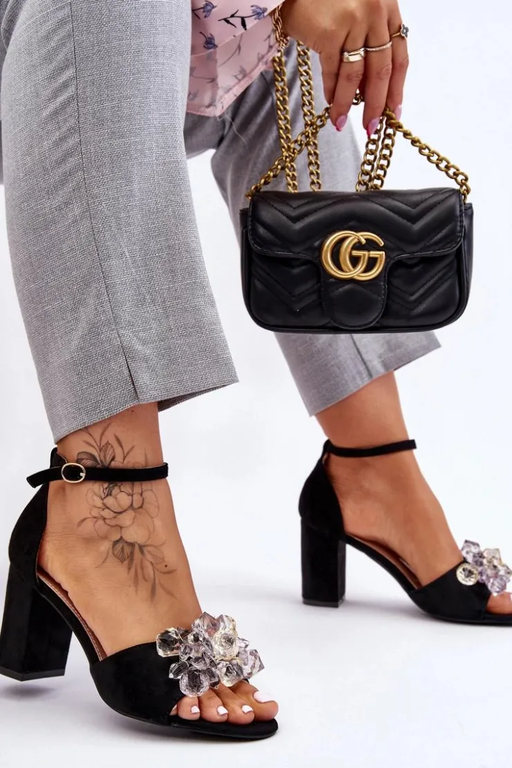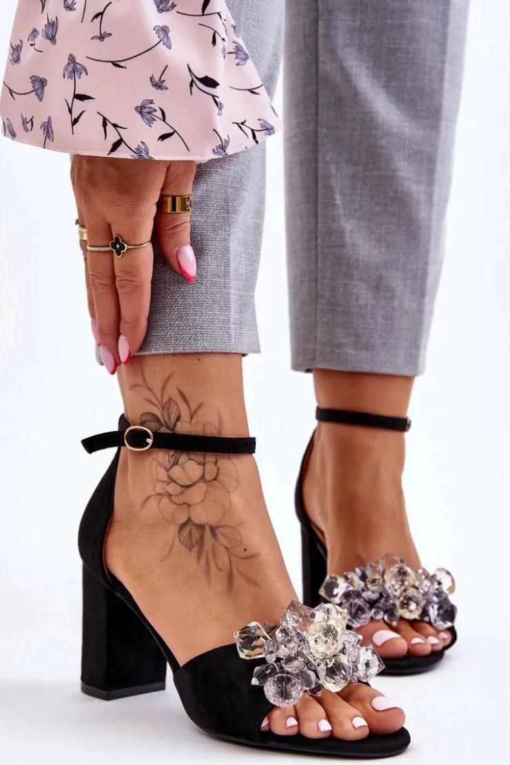 Boto Sandały Na Obcasie*Eleganckie Sandały Z Kryształami Na Obcasie Czarne Cameron