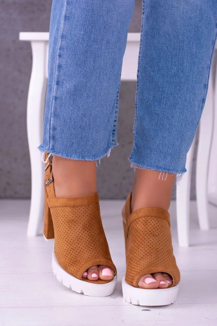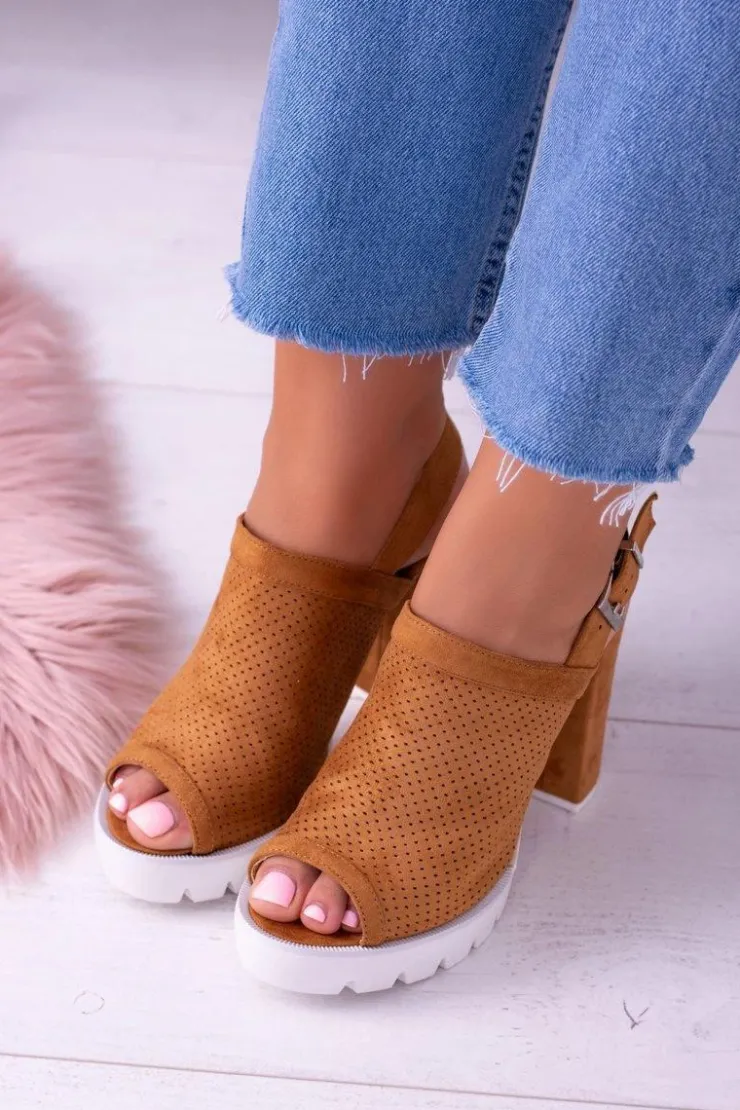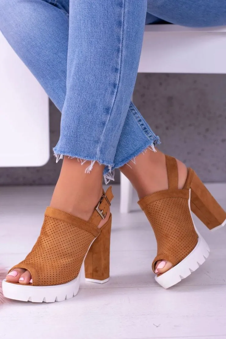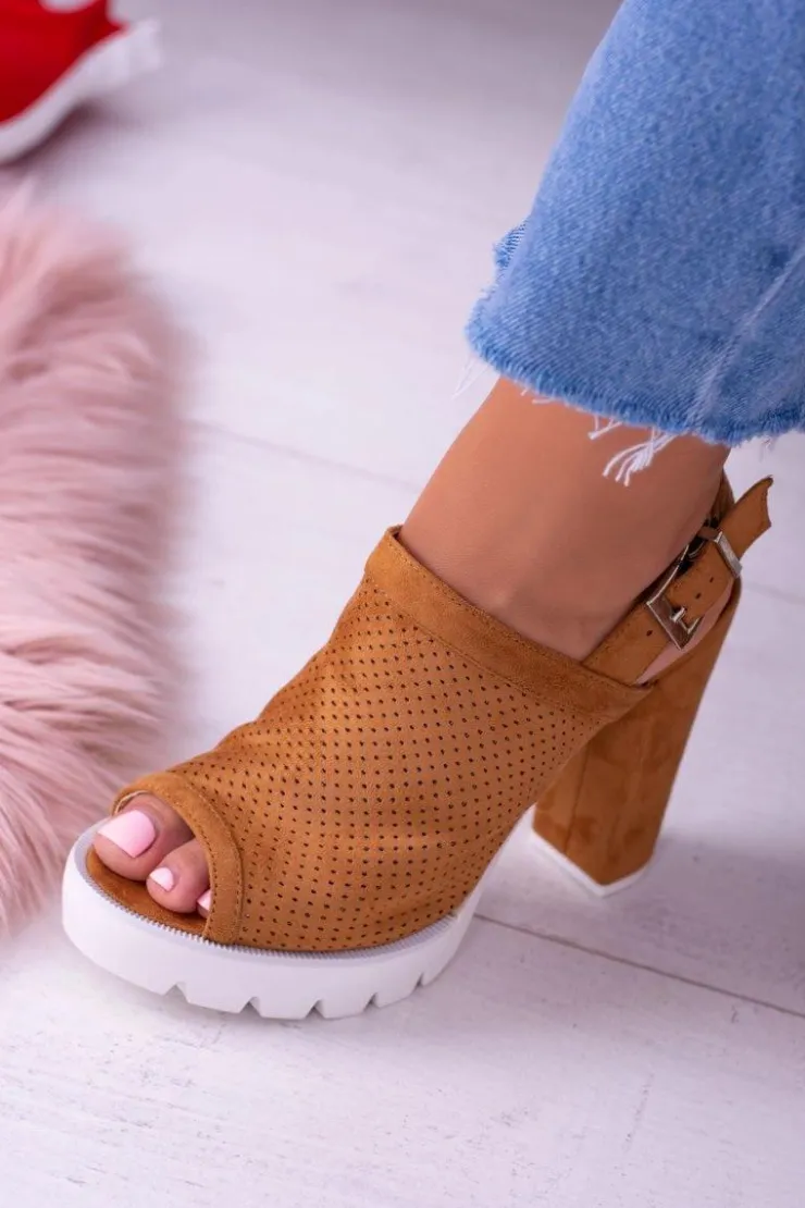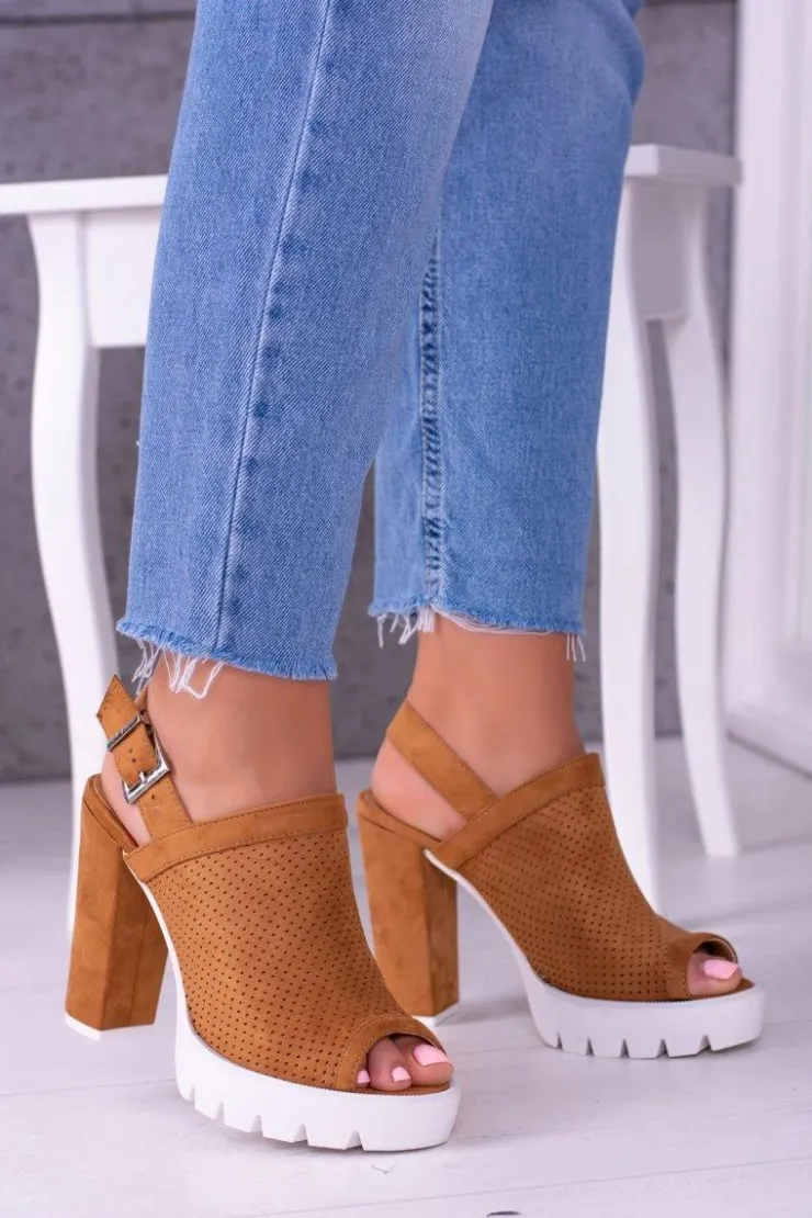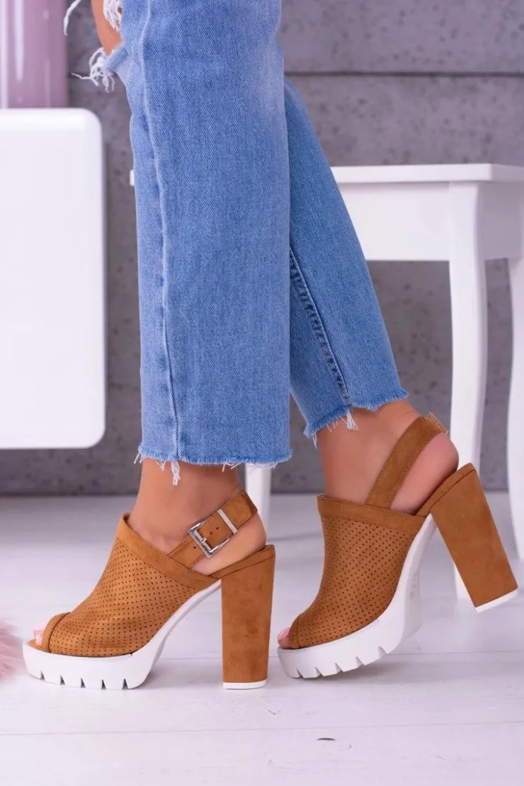 Boto Sandały Na Obcasie*Lu Boo Brązowe Zamszowe Sandały na Słupku Emare